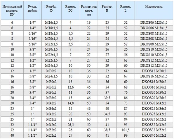Размеры фитингов для рвд 107 фото