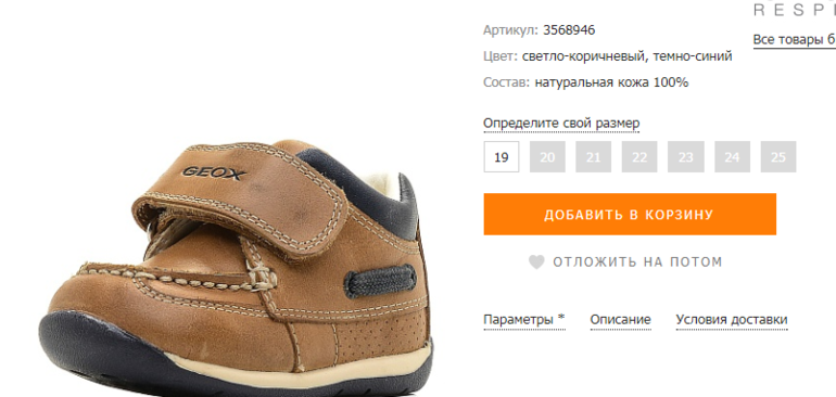 Размеры geox детская