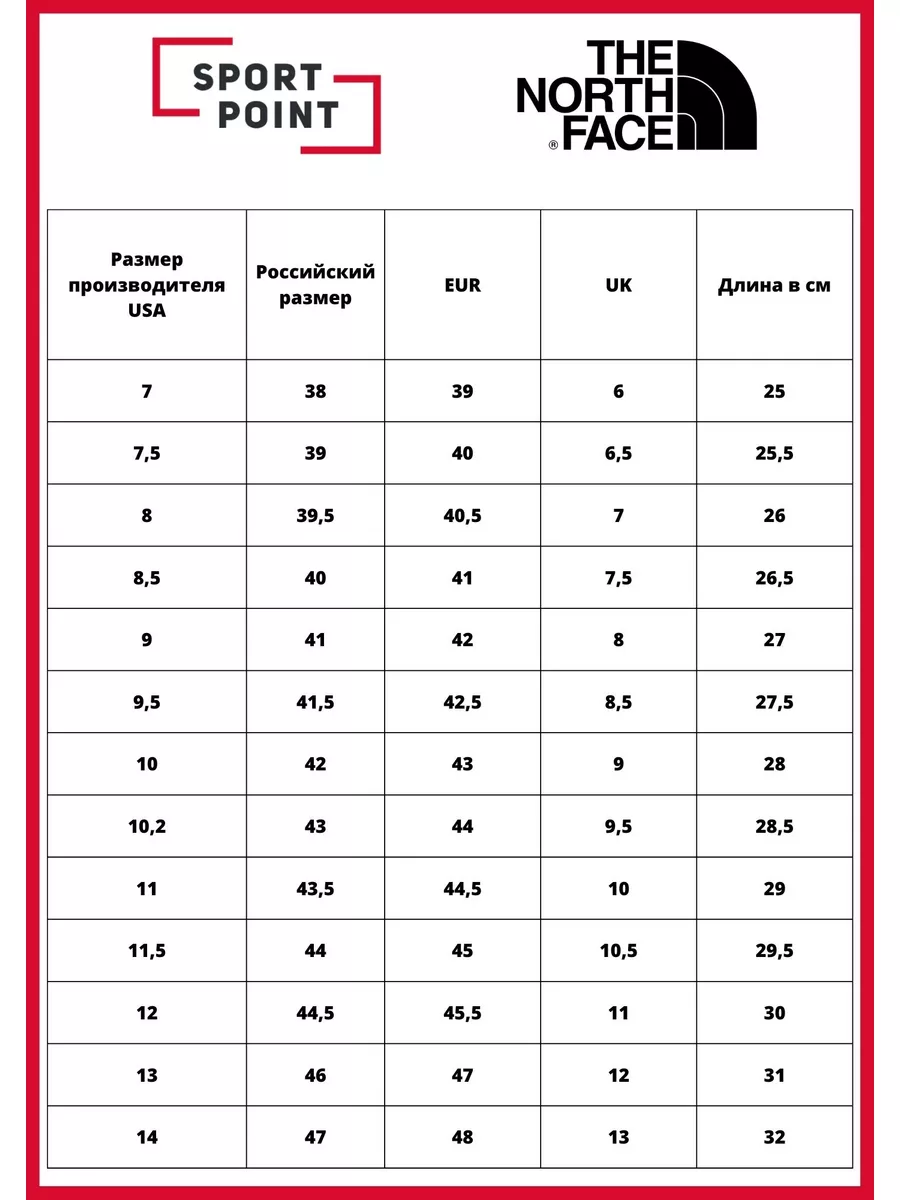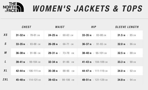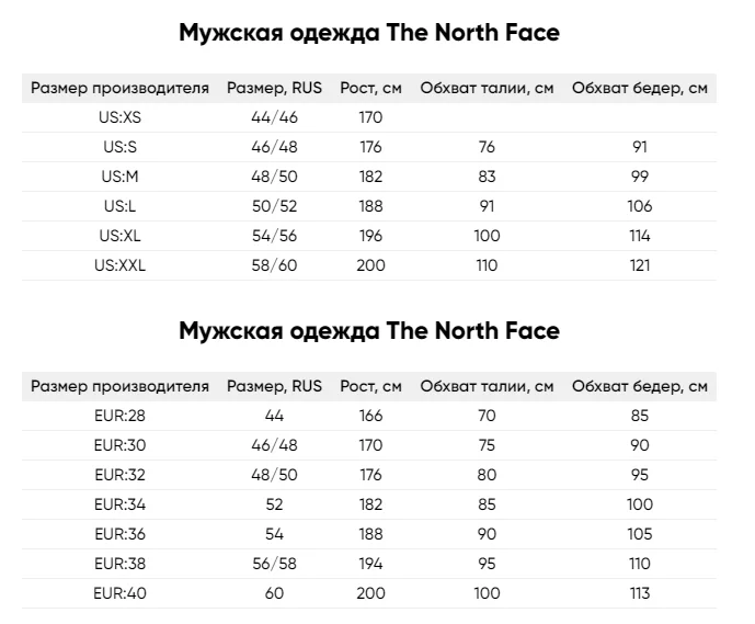 Размеры курток north face