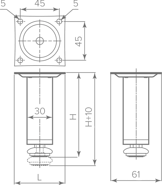 Размеры мебельных опор