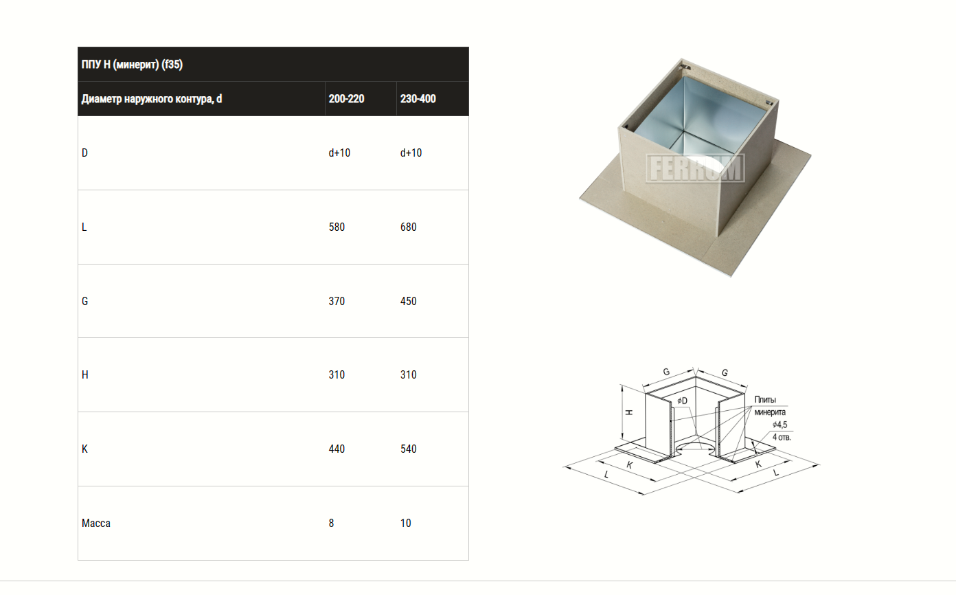 Размеры проходного узла