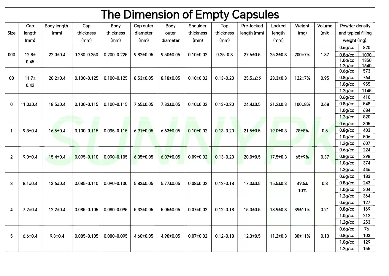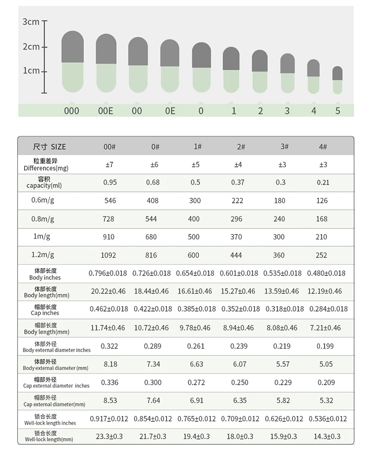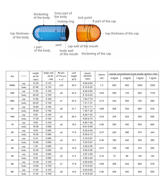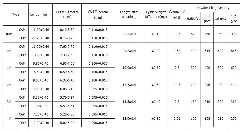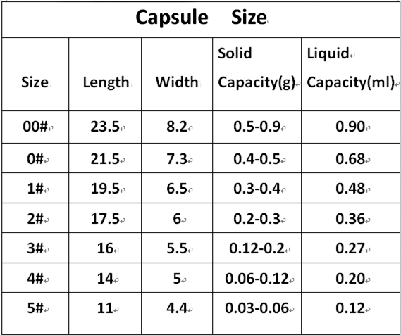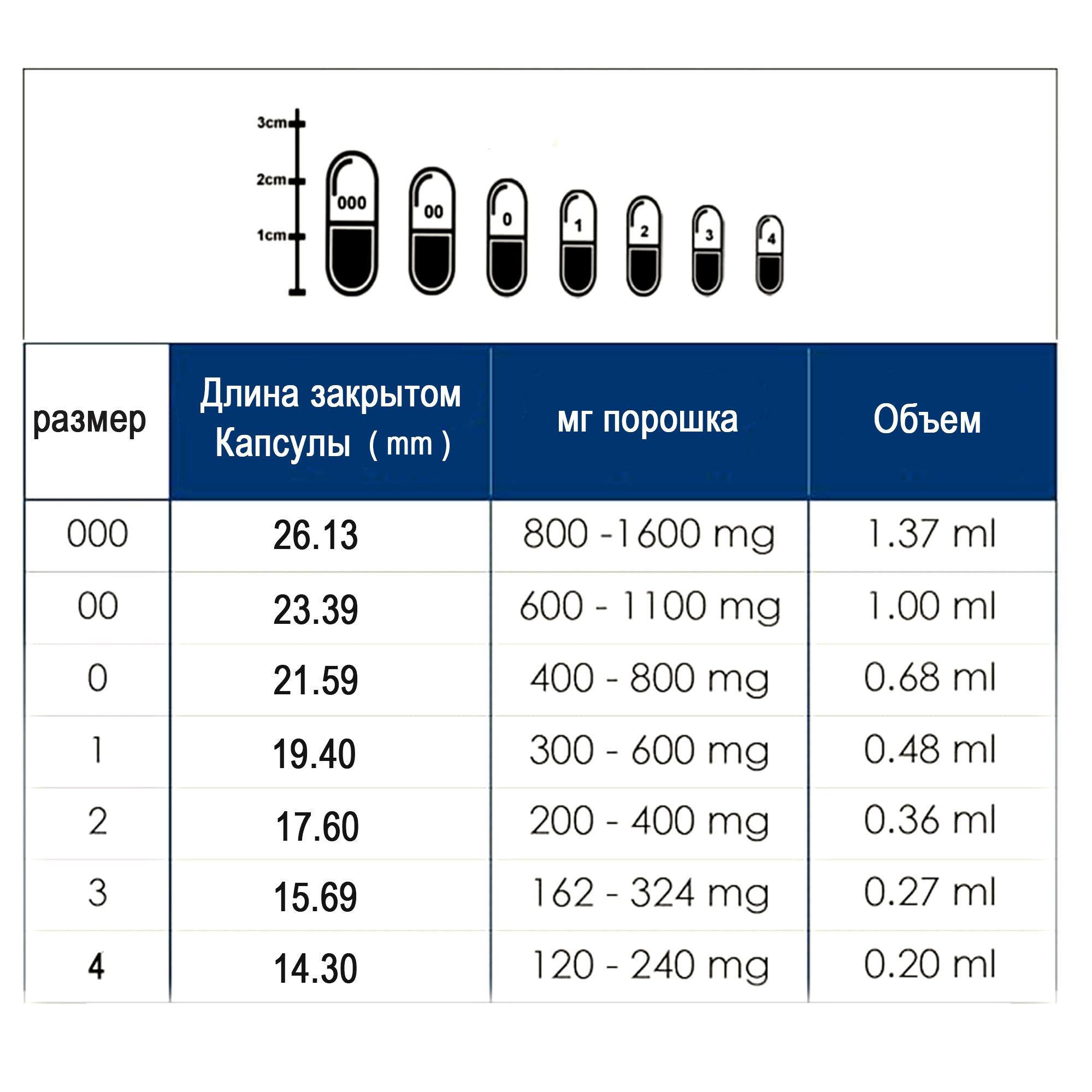 Размеры пустых капсул