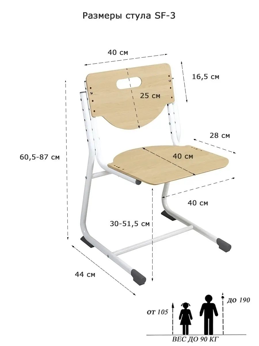 Размеры регулируемого стула