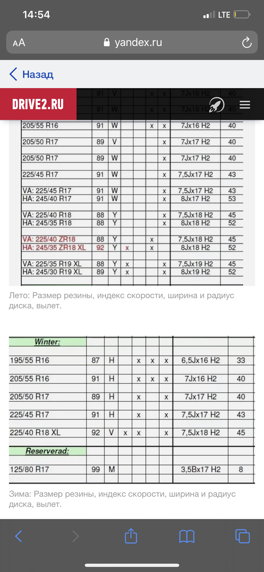 Размеры шин 18 радиуса