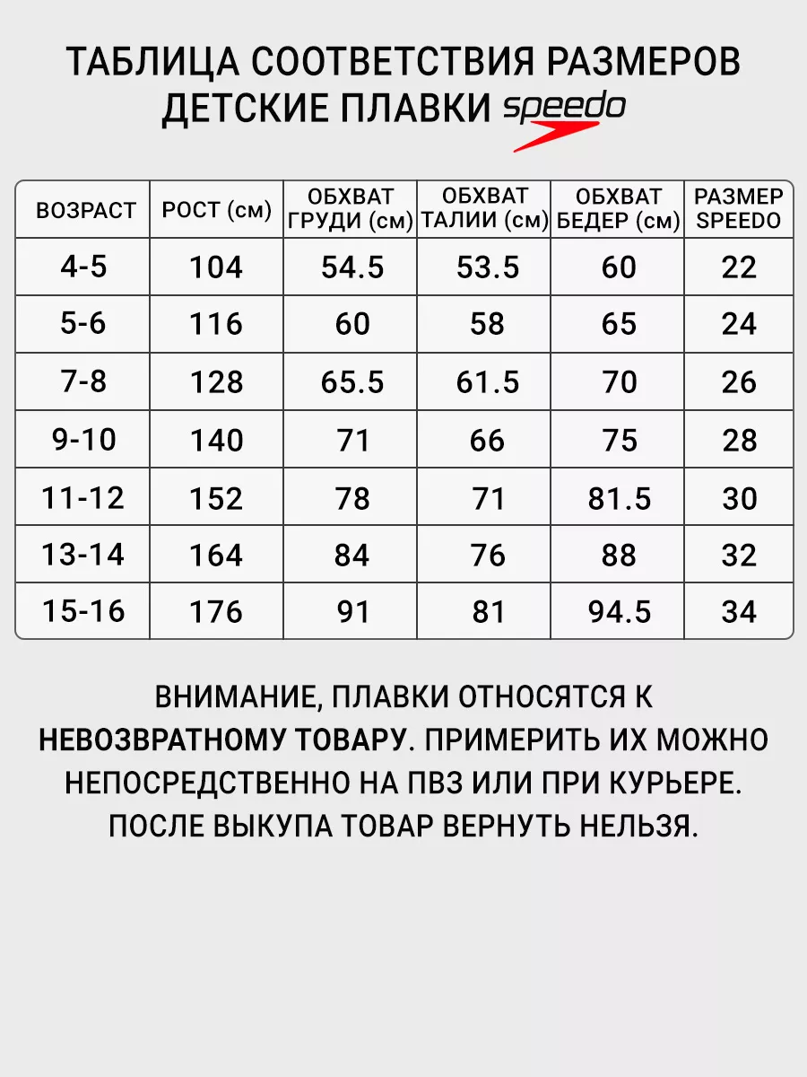 Размеры спидо