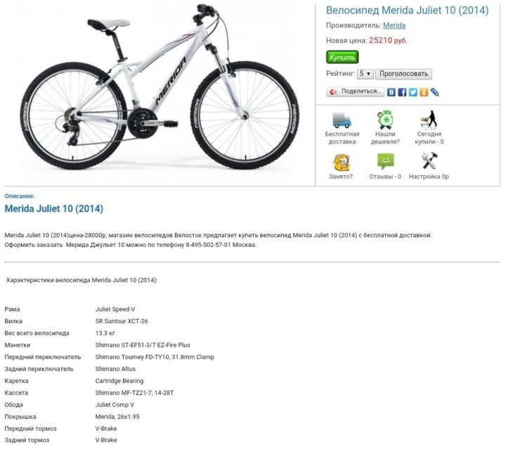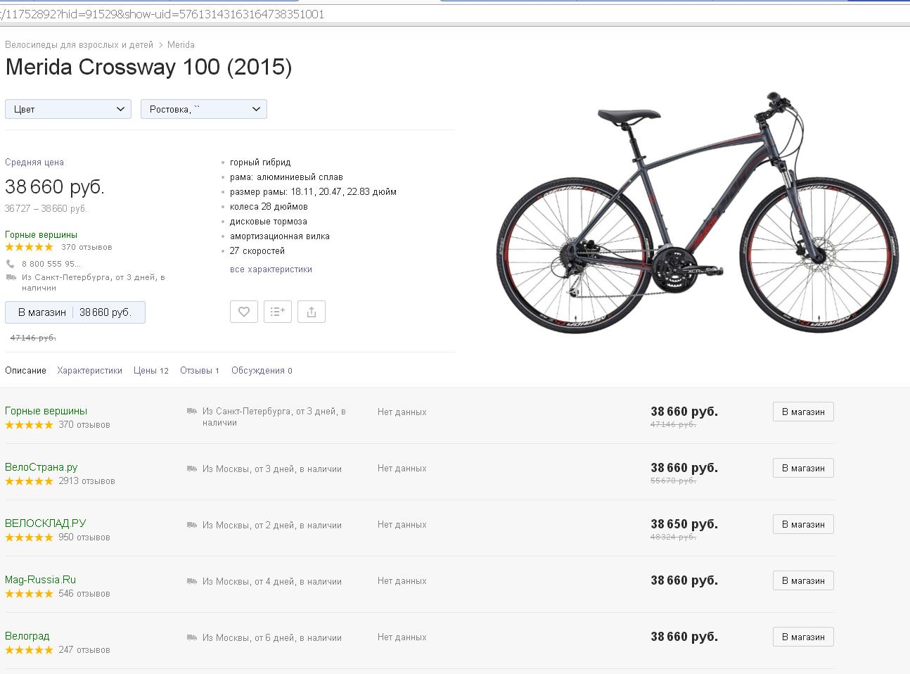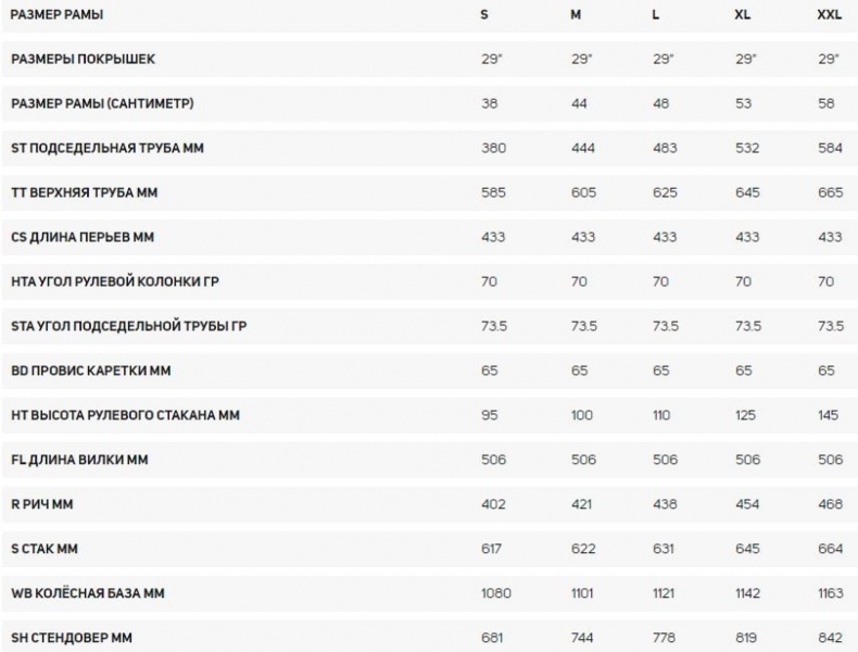 Размеры велосипеда merida