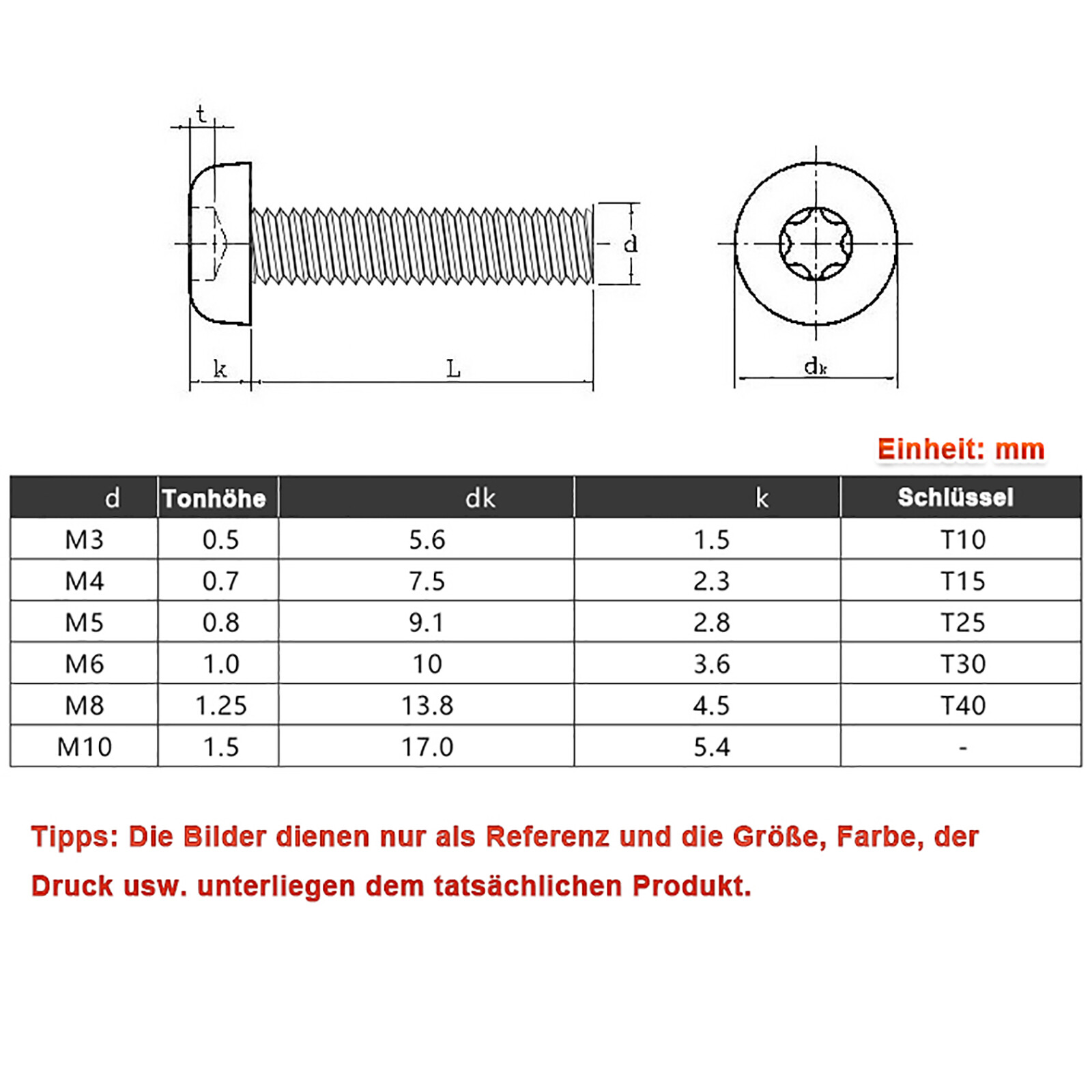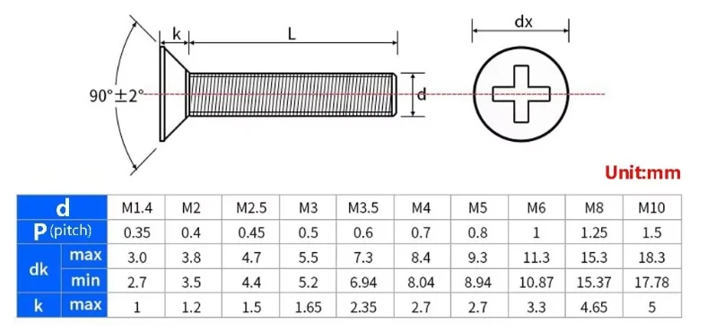 Размеры винтов в мм
