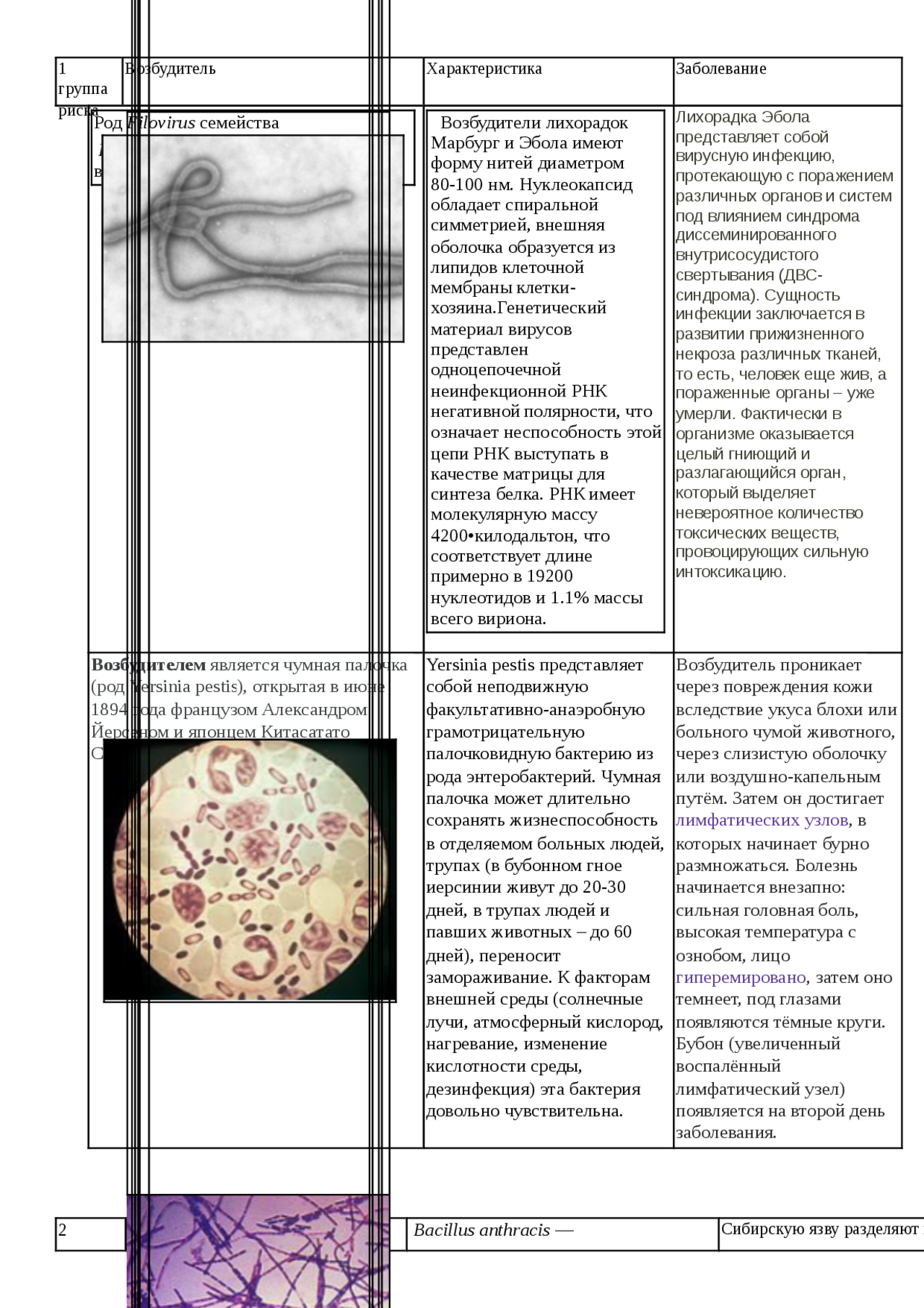 Размеры возбудителей заболеваний