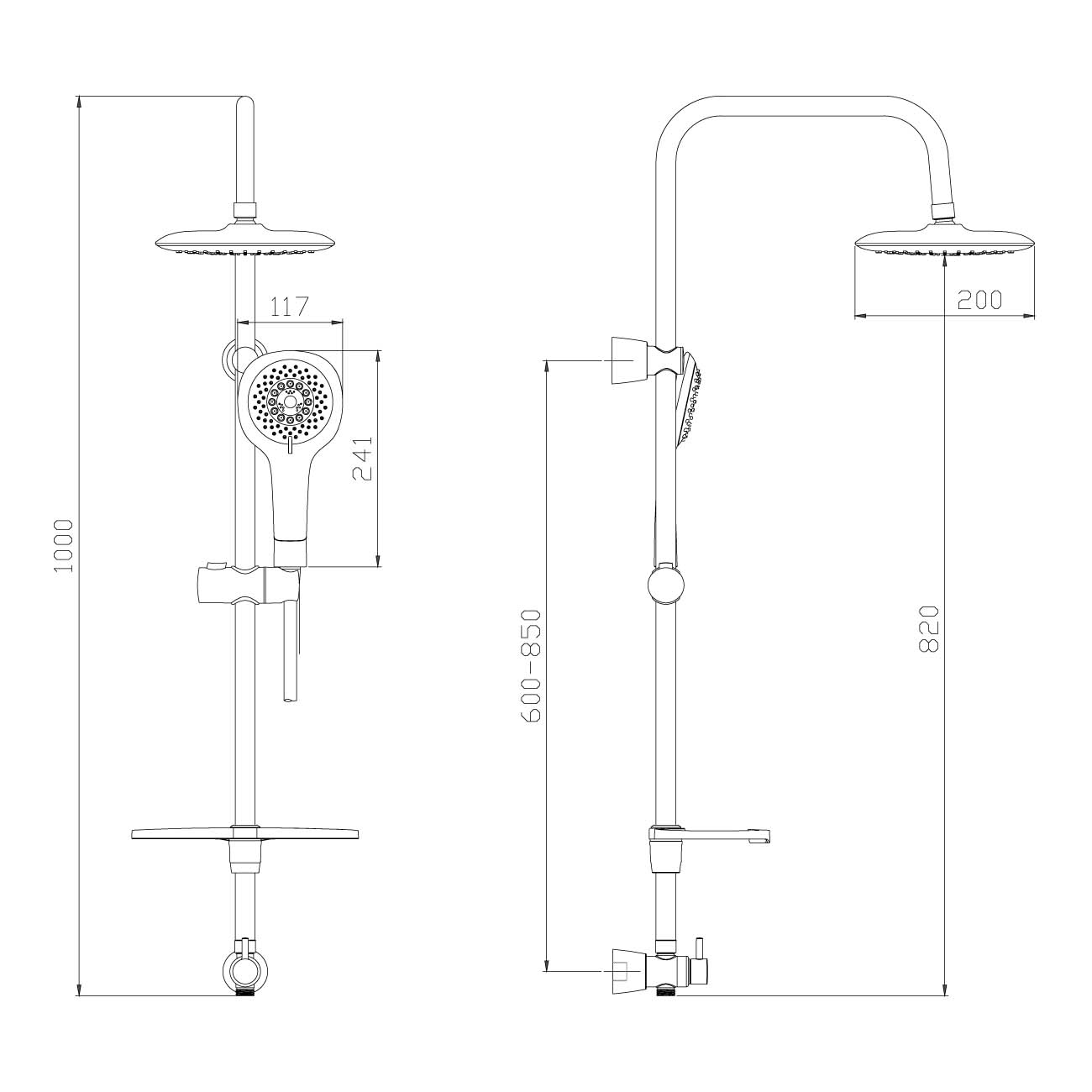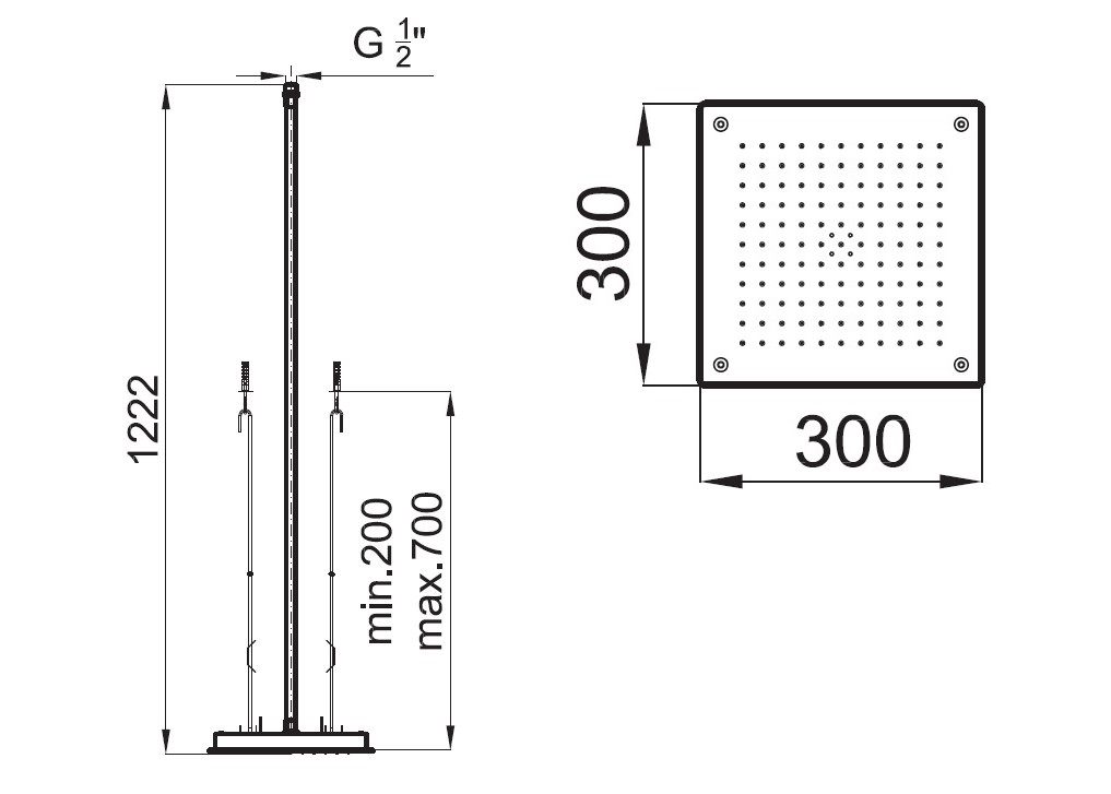 Размеры встраиваемого душа
