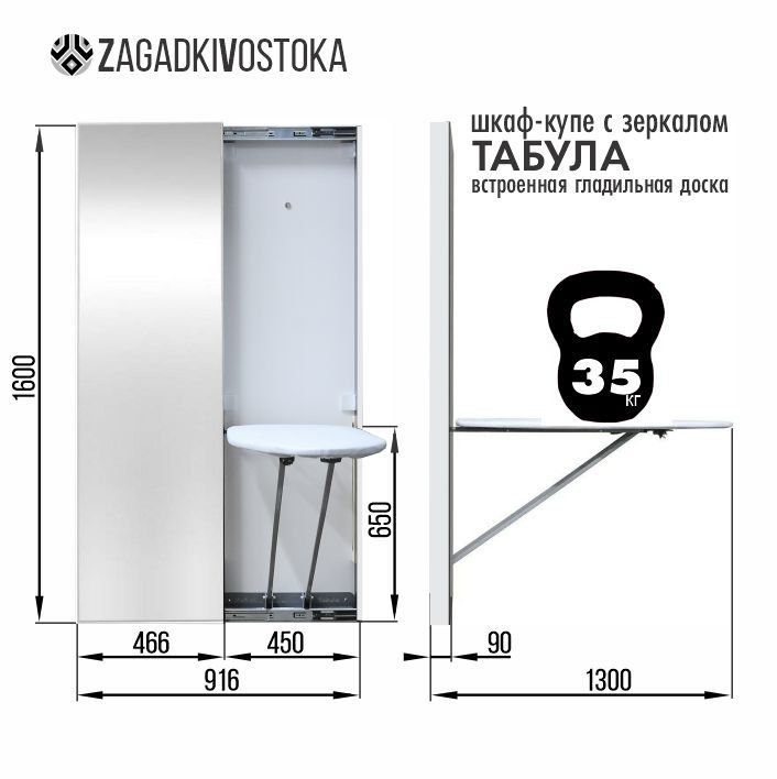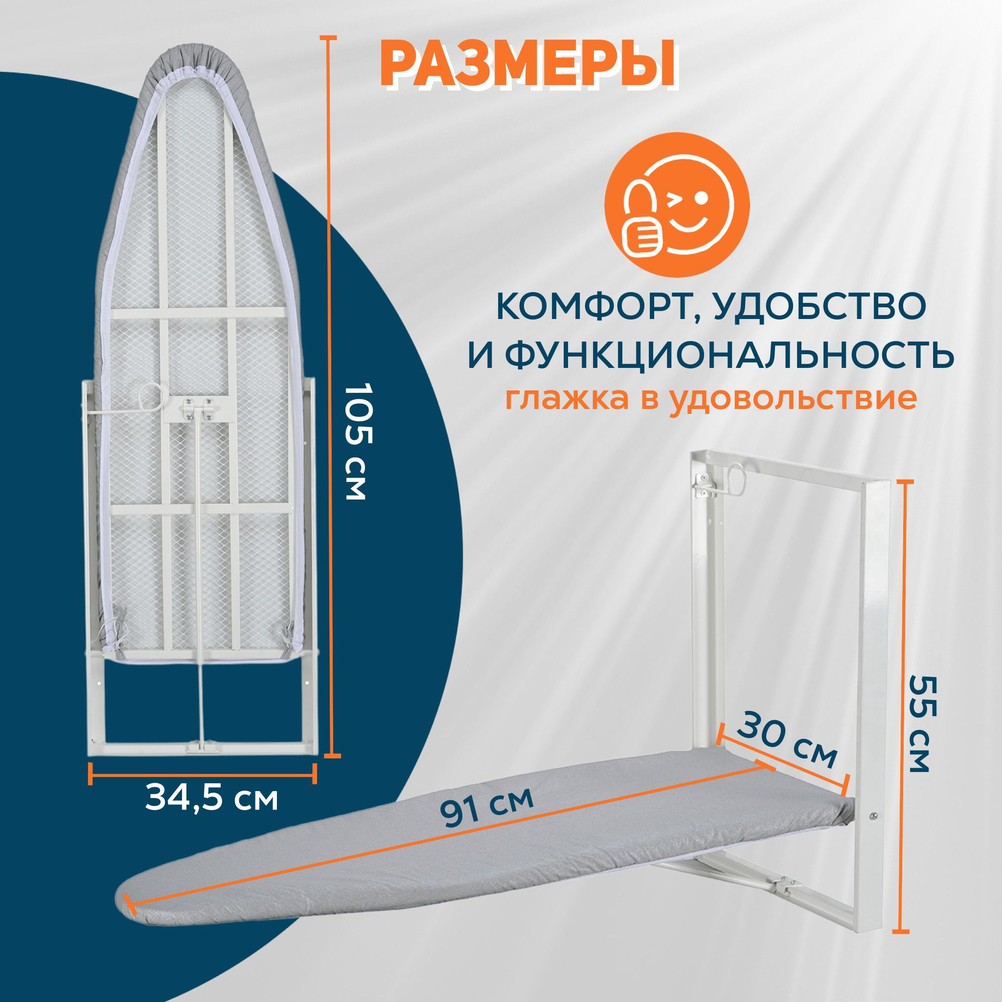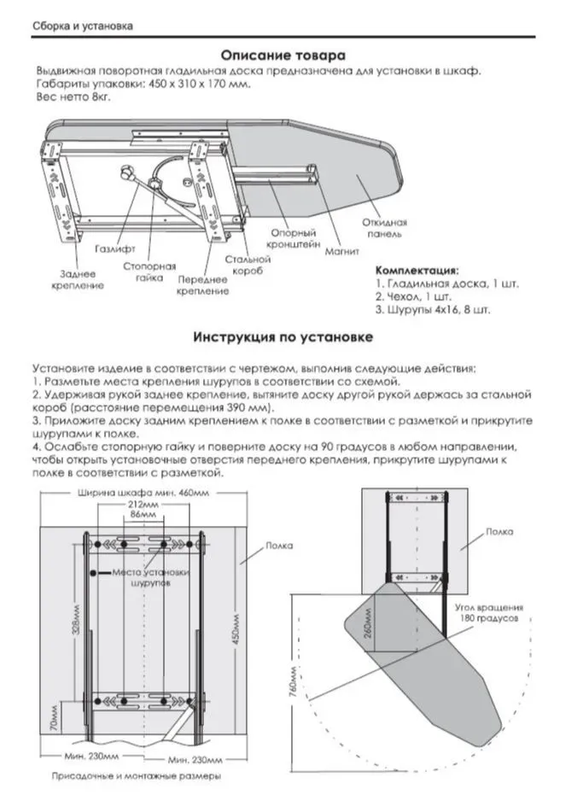 Размеры встроенной гладильной доски