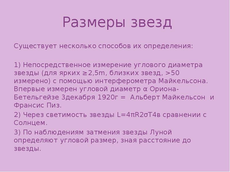 Размеры звезд кратко