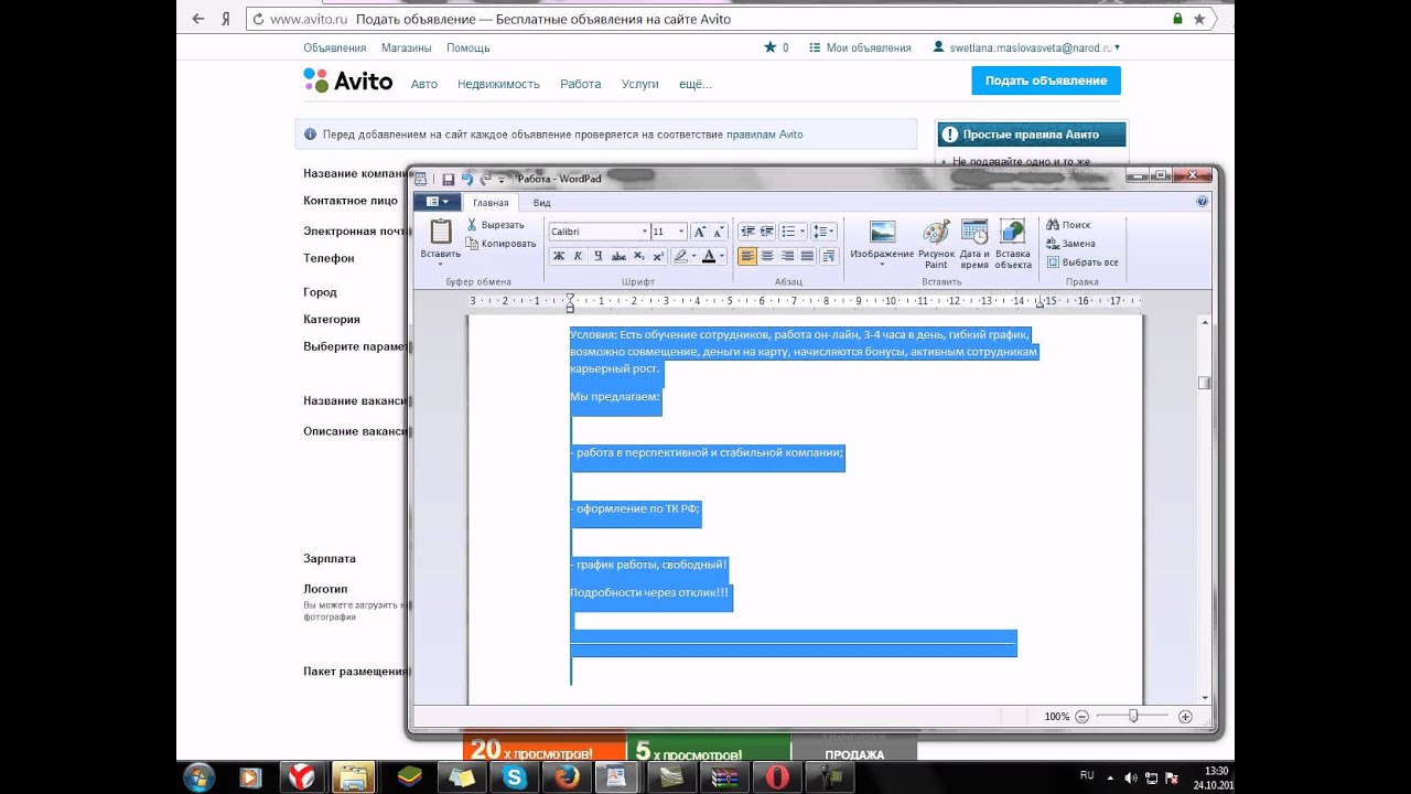 Разместить ссылку на авито