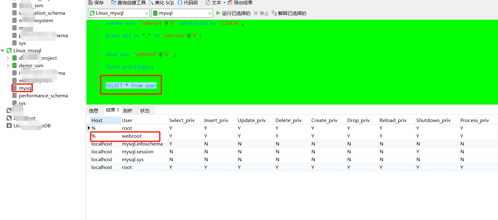 Разрешения пользователя sql