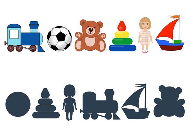 Разрезные картинки "Игрушки" . 8 . Материалы для занятий с ребенком . А вот старшие дошкольники должны уметь собрать картинки из "перепутанных" между собой . Причем сделать это должны без помощи взрослого .