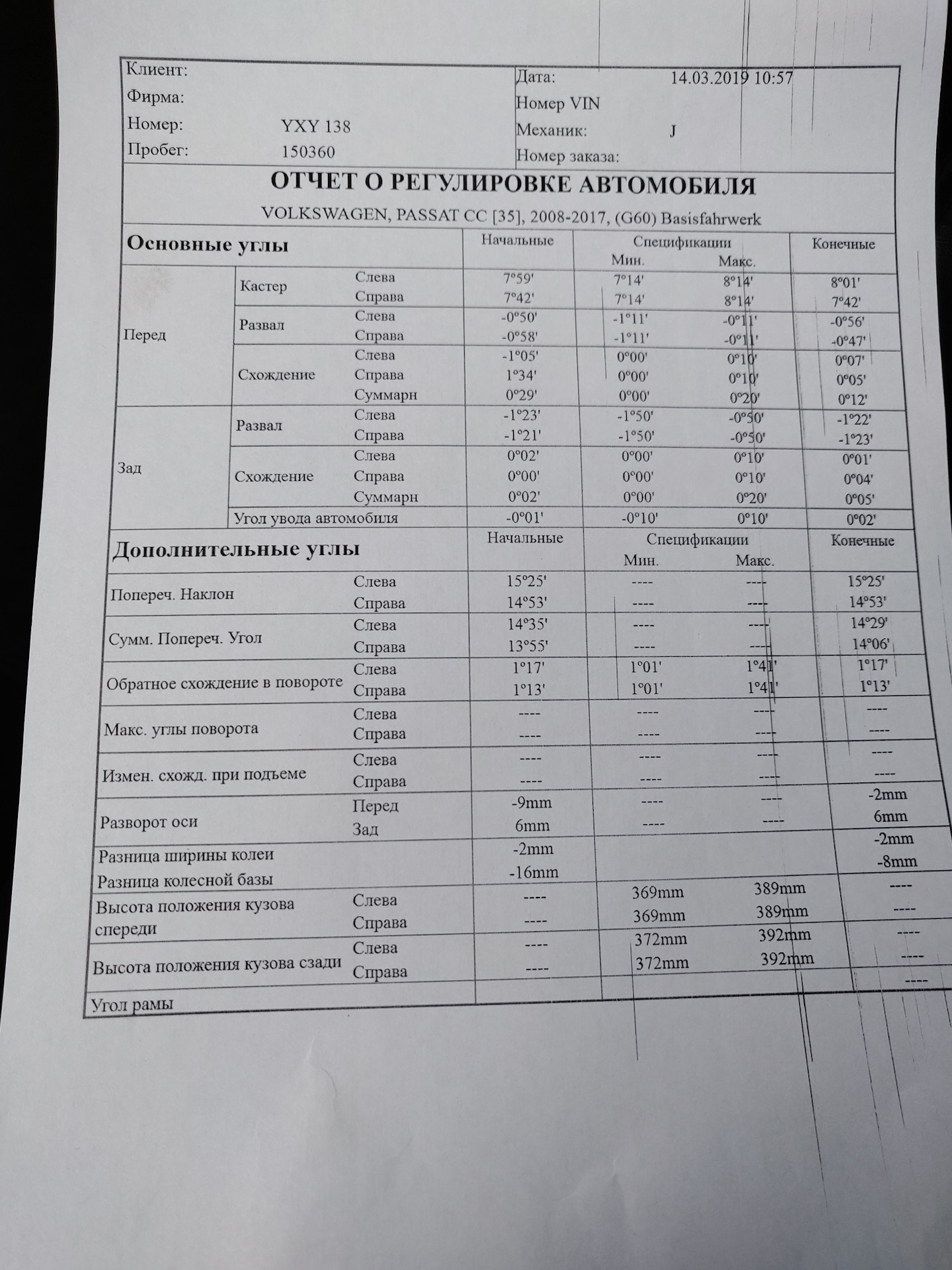 Развал на пассате 138 фото
