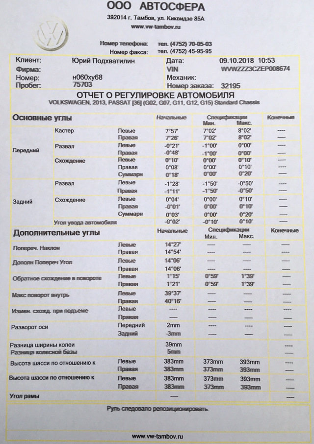 Развал на пассате