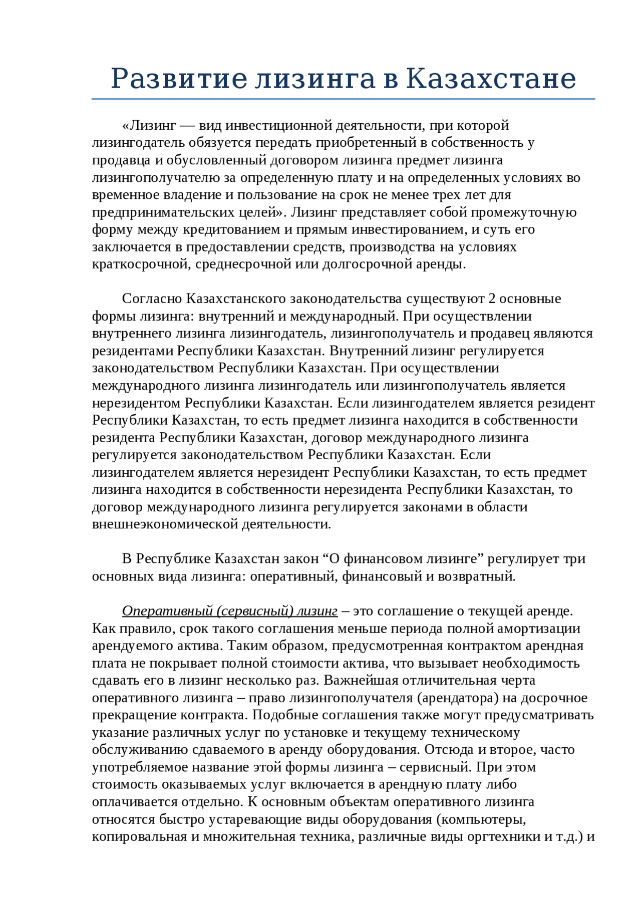 Развитие лизинговых
