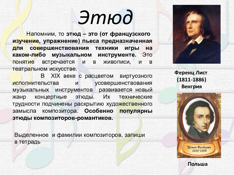 Развитие музыкального этюда