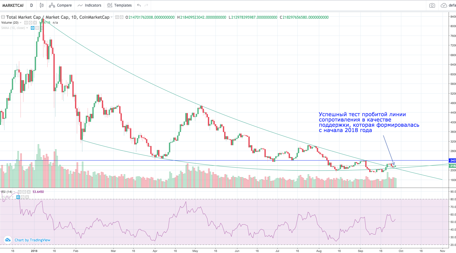 Для начала давайте посмотрим график общей капитализации крипторынка: