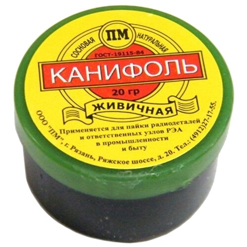 Çam reçinesi, kavanoz 20 g Ana özellikler: GOST 19113-84. Doğal çam. Endüstride ve günlük yaşamda radyo bileşenlerinin ve kritik elektronik bileşenlerin lehimlenmesi için kullanılır Net ağırlık: 20,0 g Brüt ağırlık: 20,0 g Uzunluk: 40,0 mm Genişlik: 40,0 mm Yükseklik: 25,0 mm