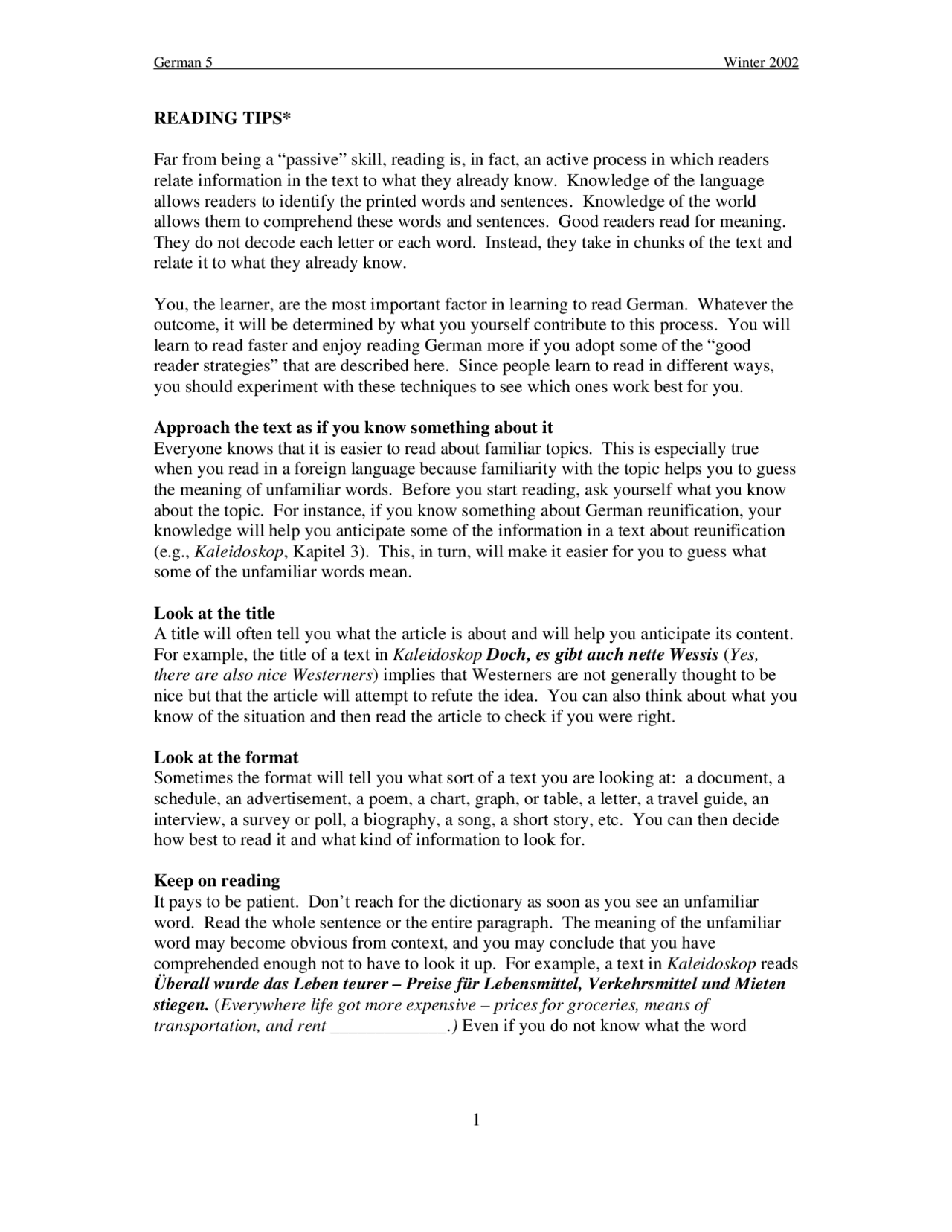 Read In German