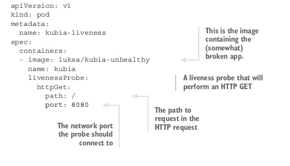 برای اینکه مطمئن شوید که کانتینر در همچین شرایطی ریستارت میشود ، شما باید سلامت اپلیکیشن را از بیرون کانتینر و پاد چک کنید .