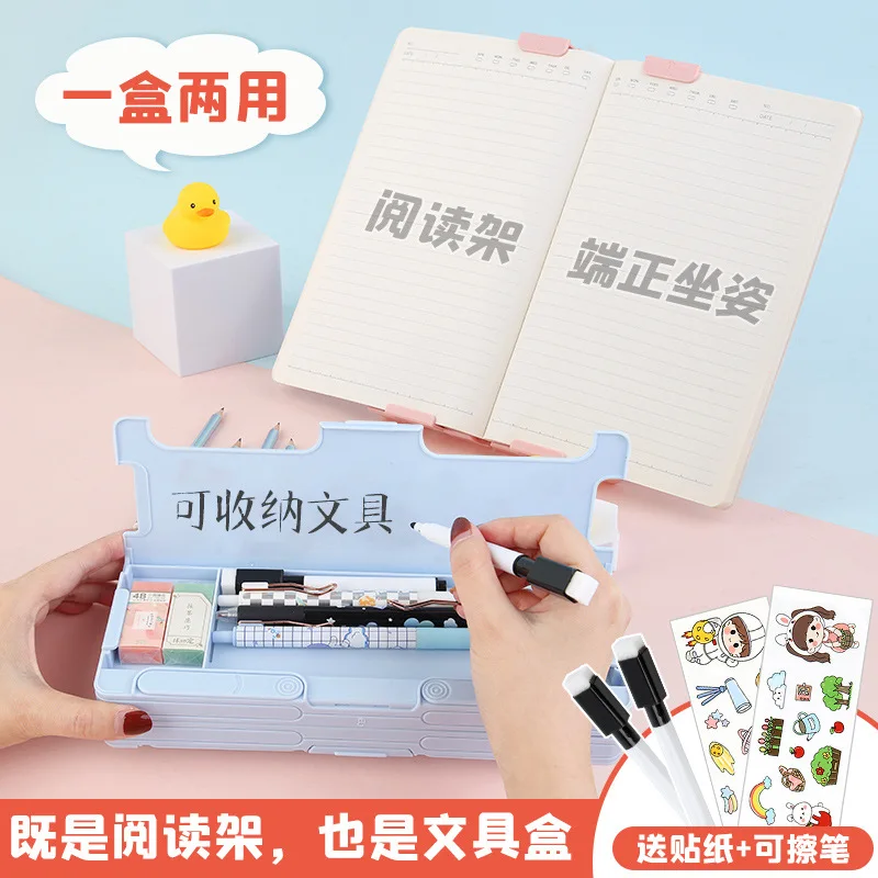 Reading Bookshelf Stationery Box, Primary School Multifunctional Black Technology Pencil Box, Learning Bracket, Double-Sided Lar - Купить с бесплатной доставкой