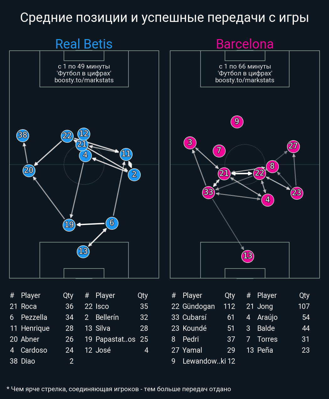 97 успешных передач из 107 попыток (1 под удар, 4 с продвижением, 7 на трети соперника)