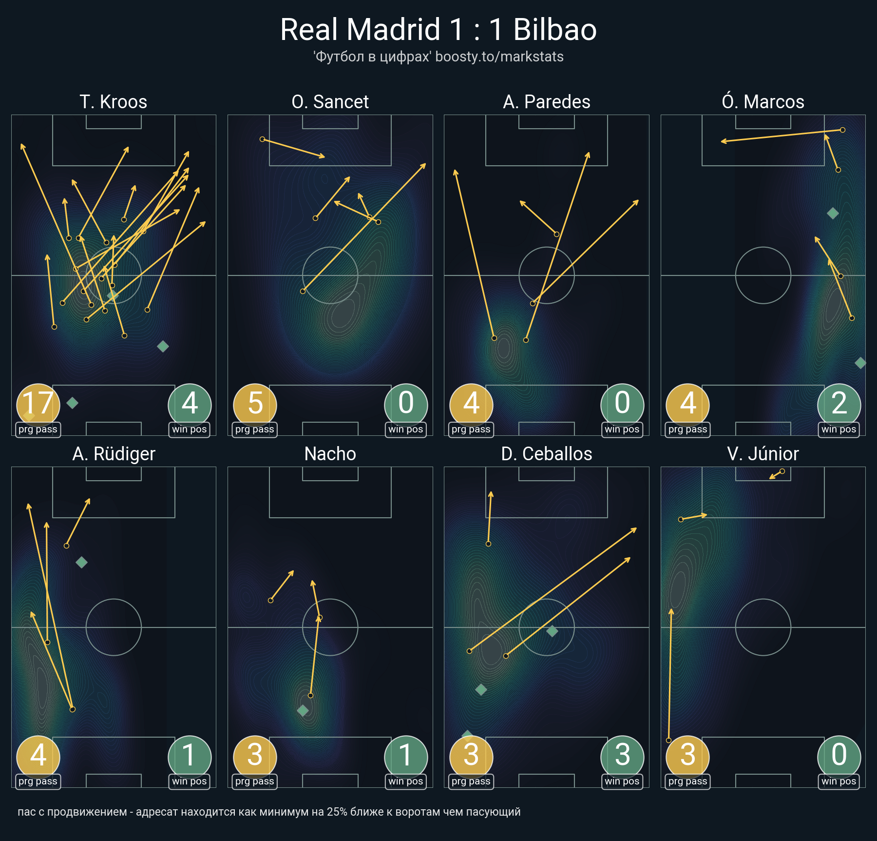 52 успешных передач из 58 попыток (1 под удар, 3 с продвижением, 7 на трети соперника)