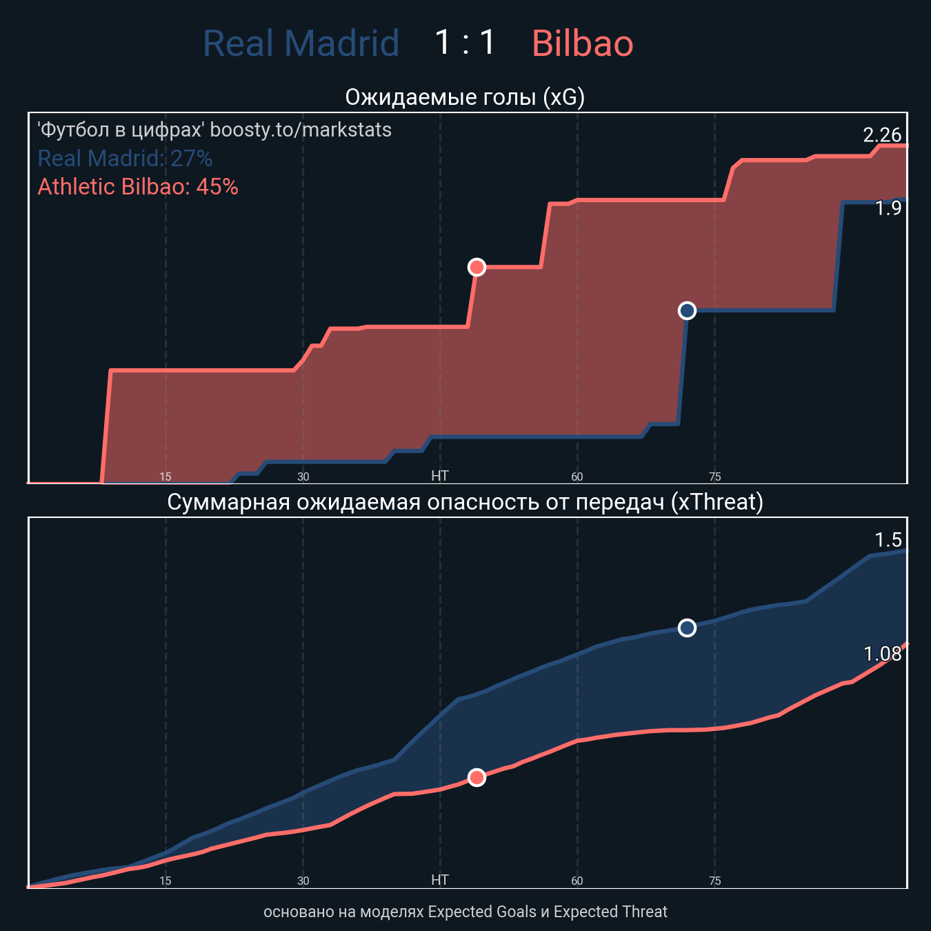 xThreat без учета угловых: 1.48 - 1.0