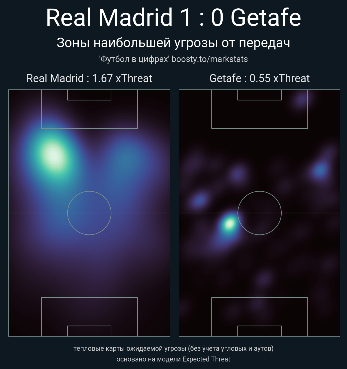 xThreat без учета угловых: 1.67 - 0.55