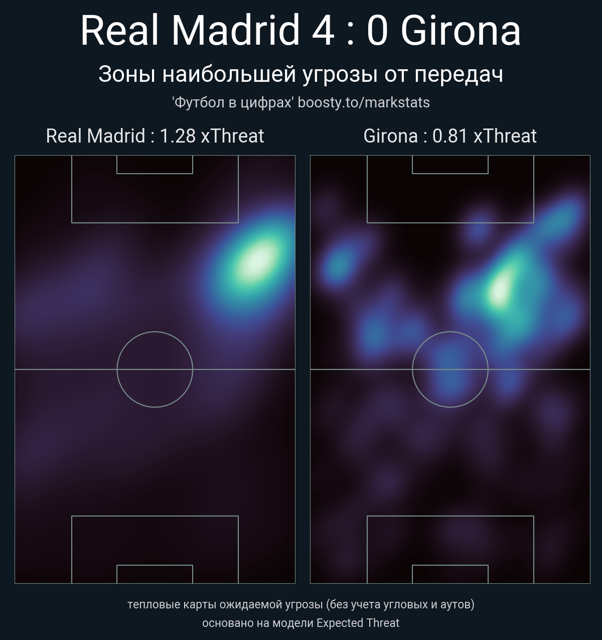 xThreat без учета угловых: 1.28 - 0.81