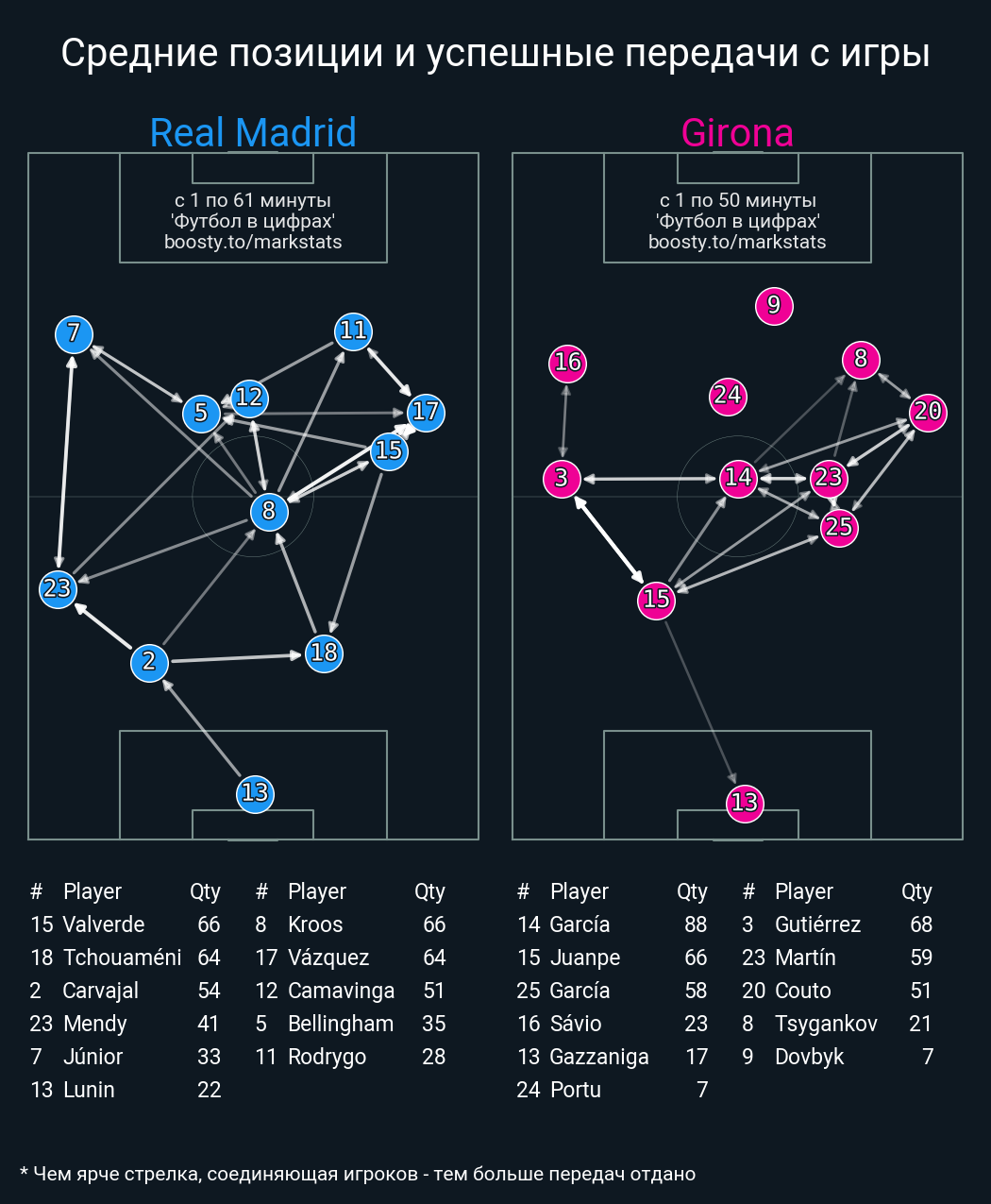 60 успешных передач из 64 попыток (1 под удар, 5 с продвижением, 2 на трети соперника)