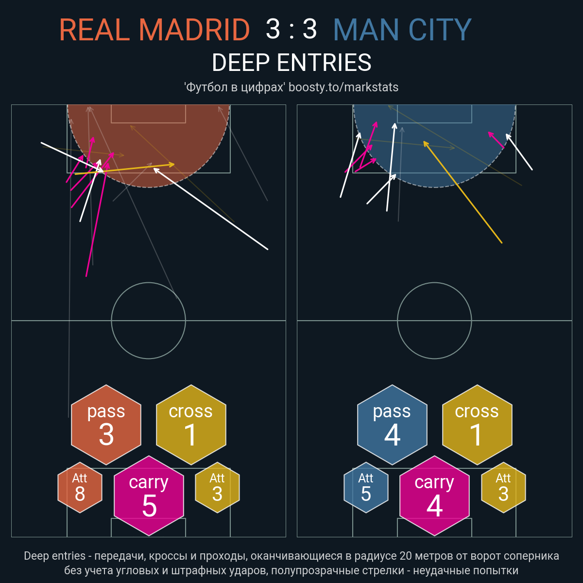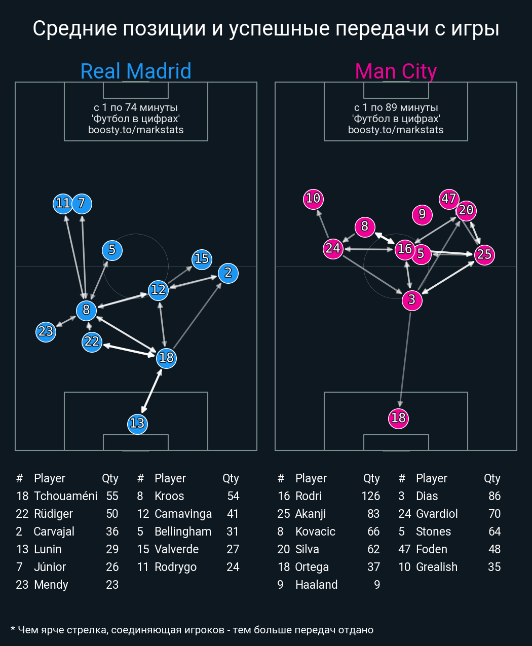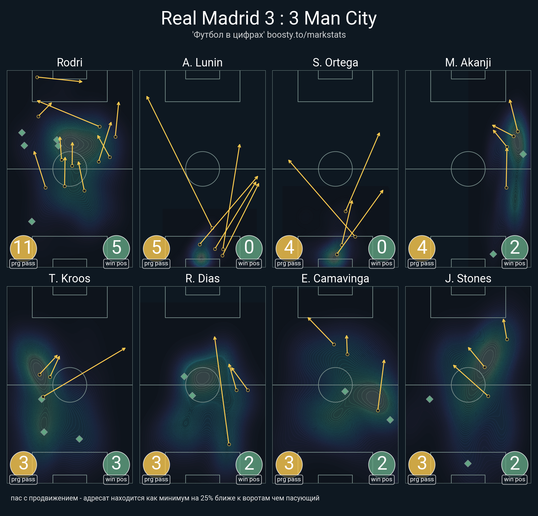 117 успешных передач из 126 попыток (11 с продвижением, 19 на трети соперника)