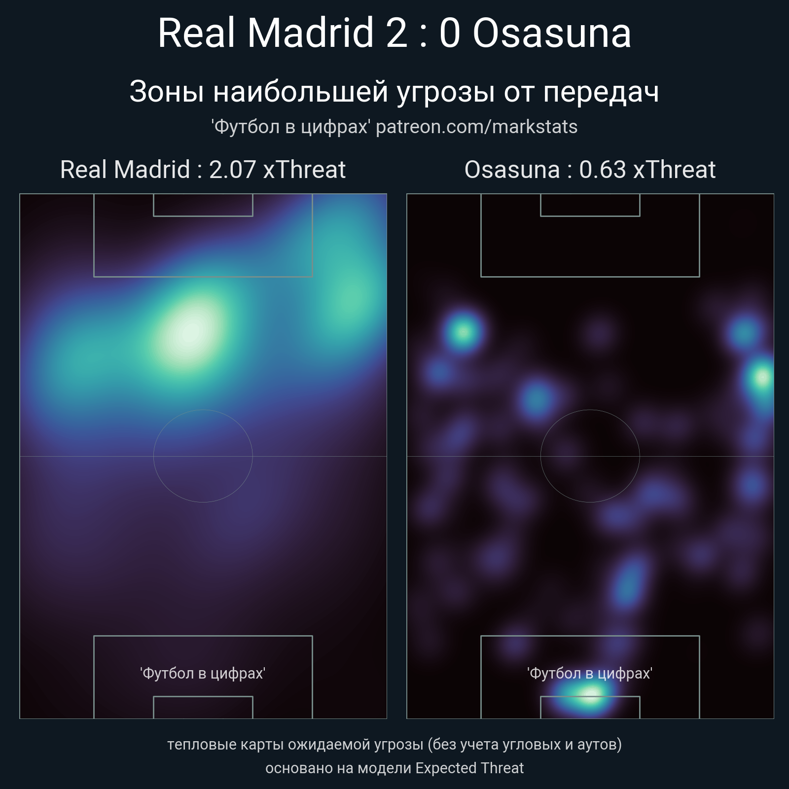 ▪ xThreat без учета угловых: 2.07 - 0.63