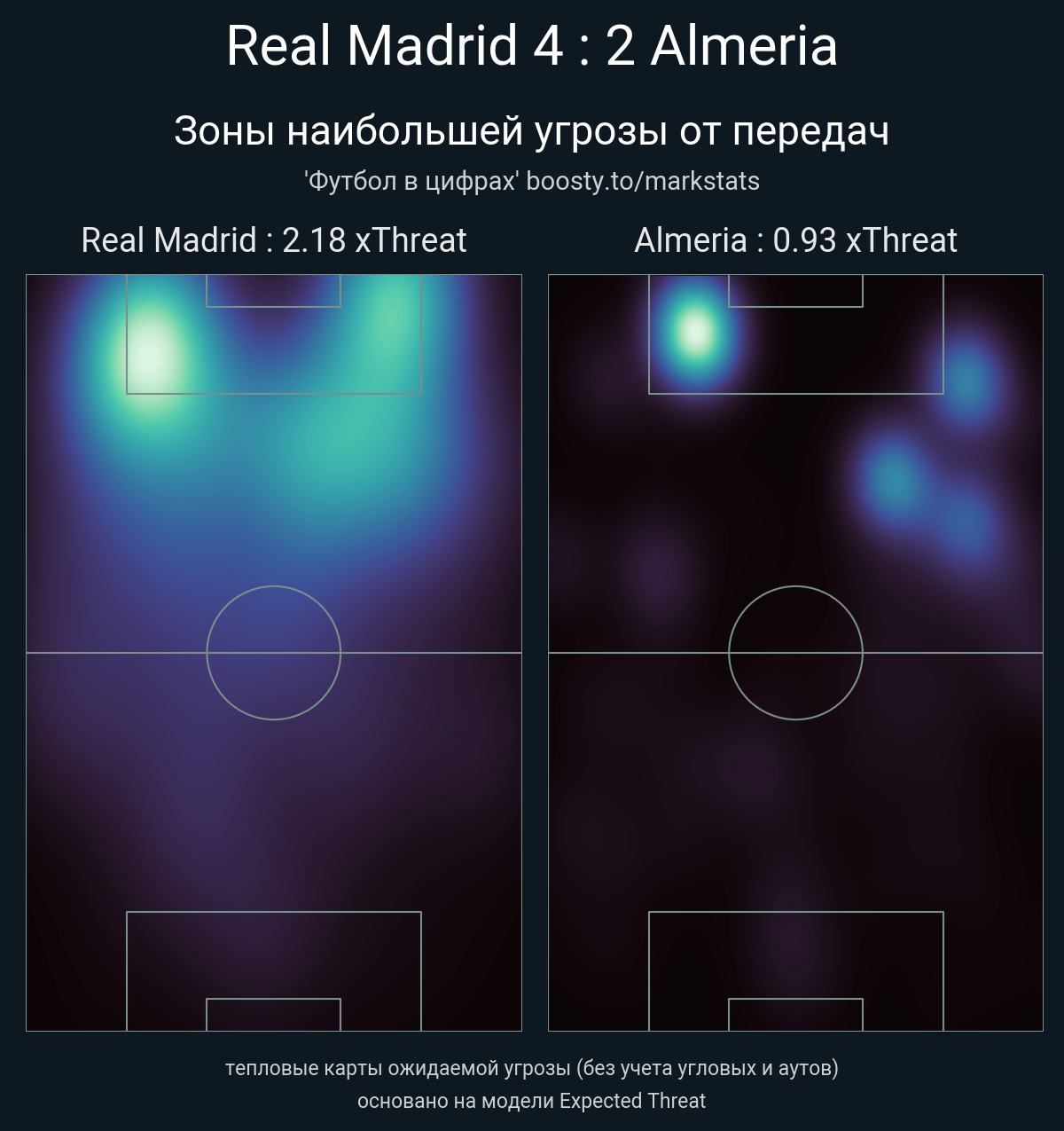 xThreat без учета угловых: 2.18 - 0.93