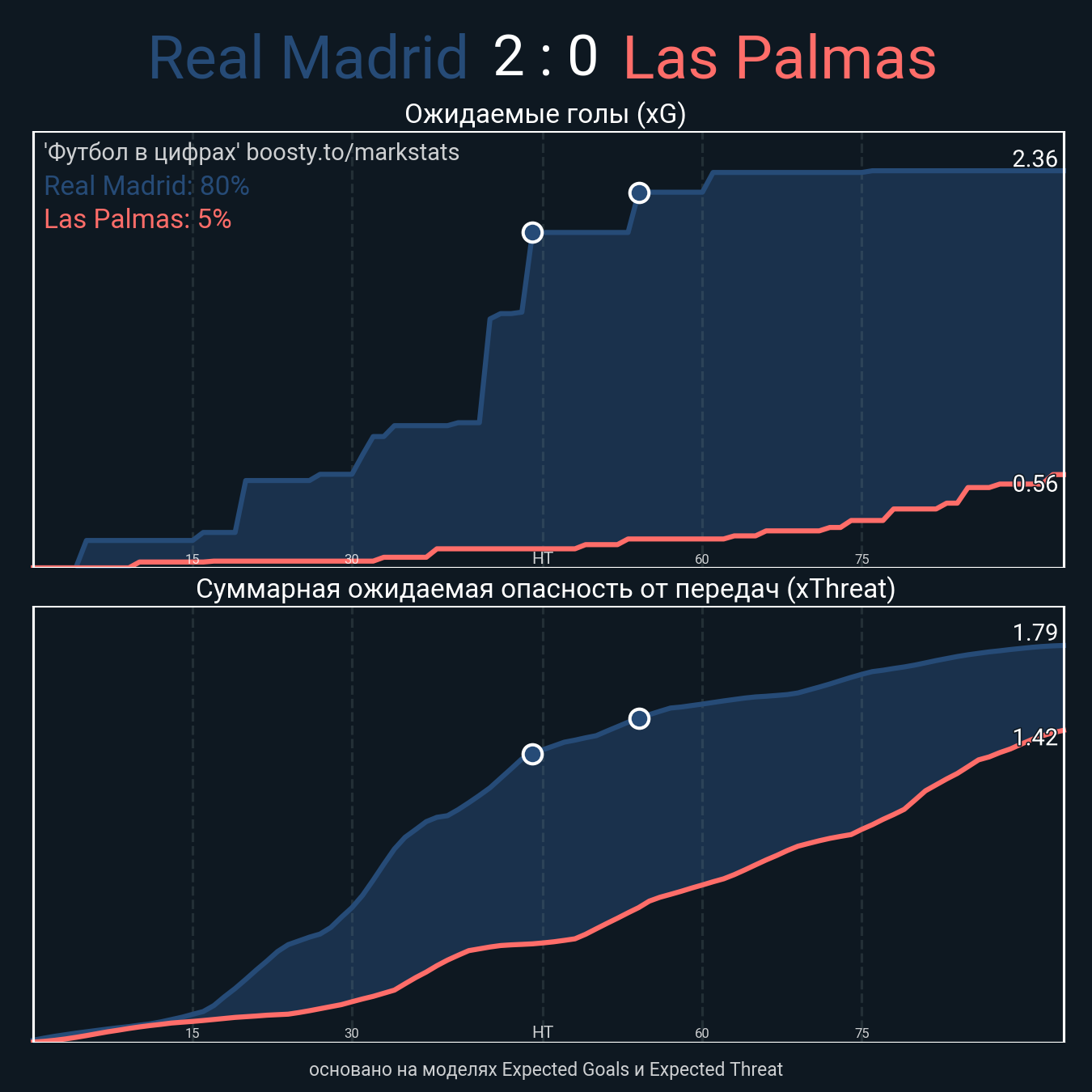 xThreat без учета угловых: 1.53 - 1.4