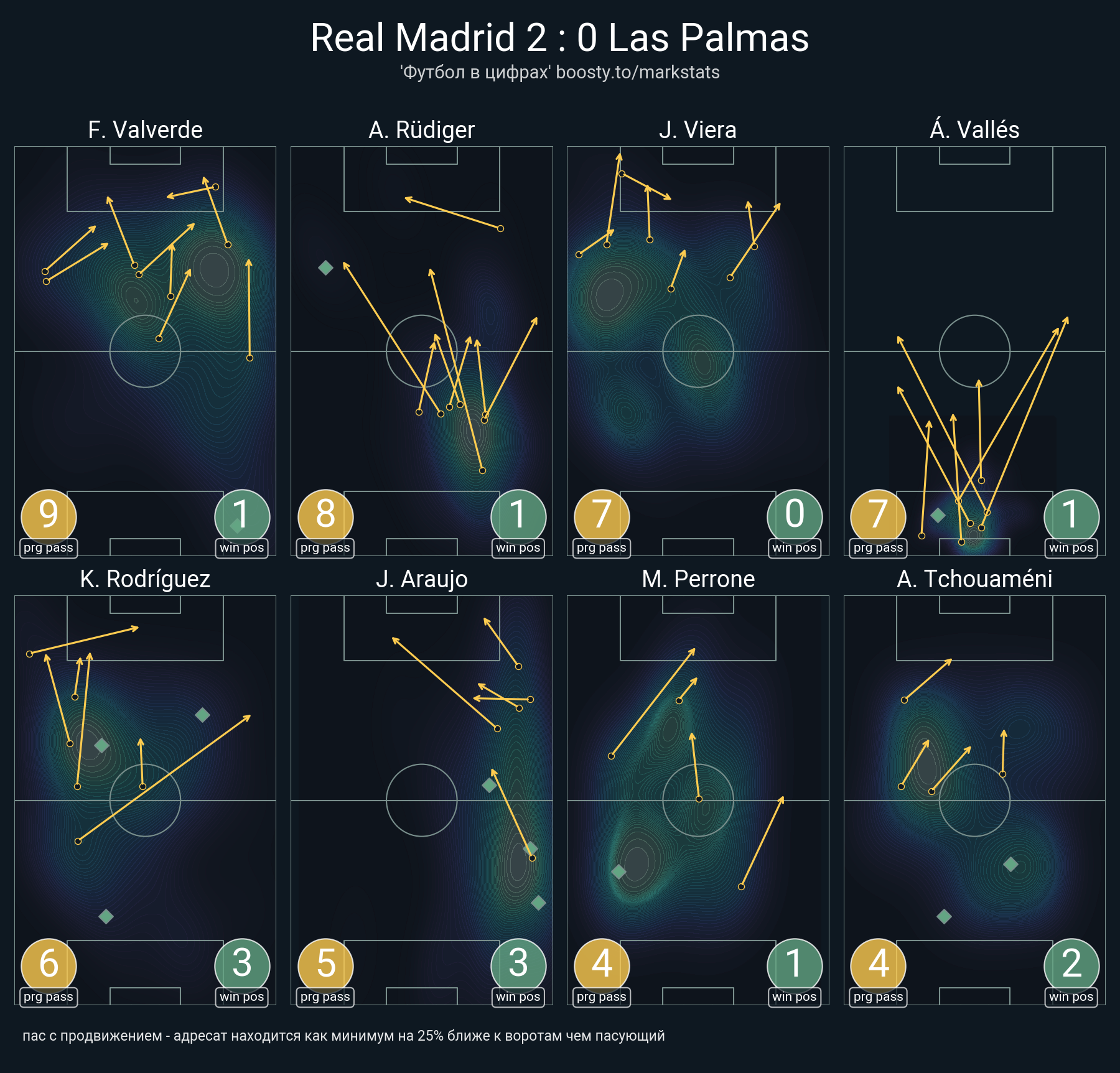 26 успешных передач из 30 попыток (1 ассист, 3 под удар, 1 с продвижением, 20 на трети соперника)