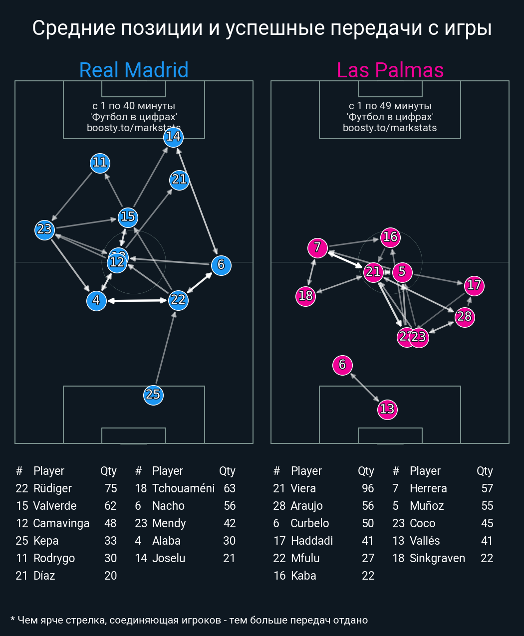 54 успешных передач из 64 попыток (5 под удар, 9 с продвижением, 22 на трети соперника)