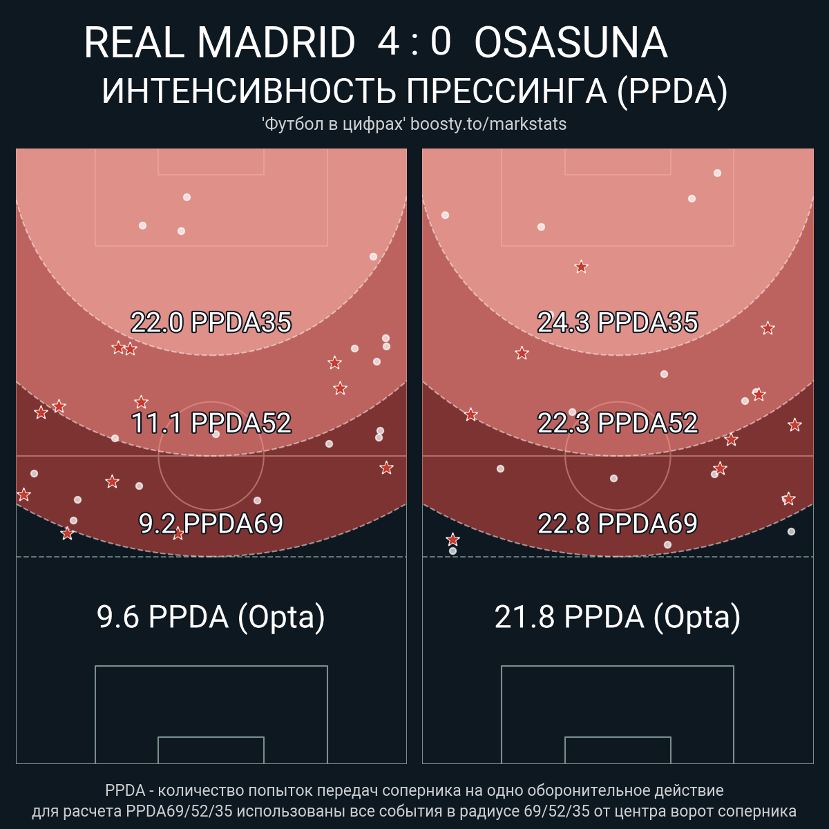 PPDA (Opta): 9.6 - 21.8