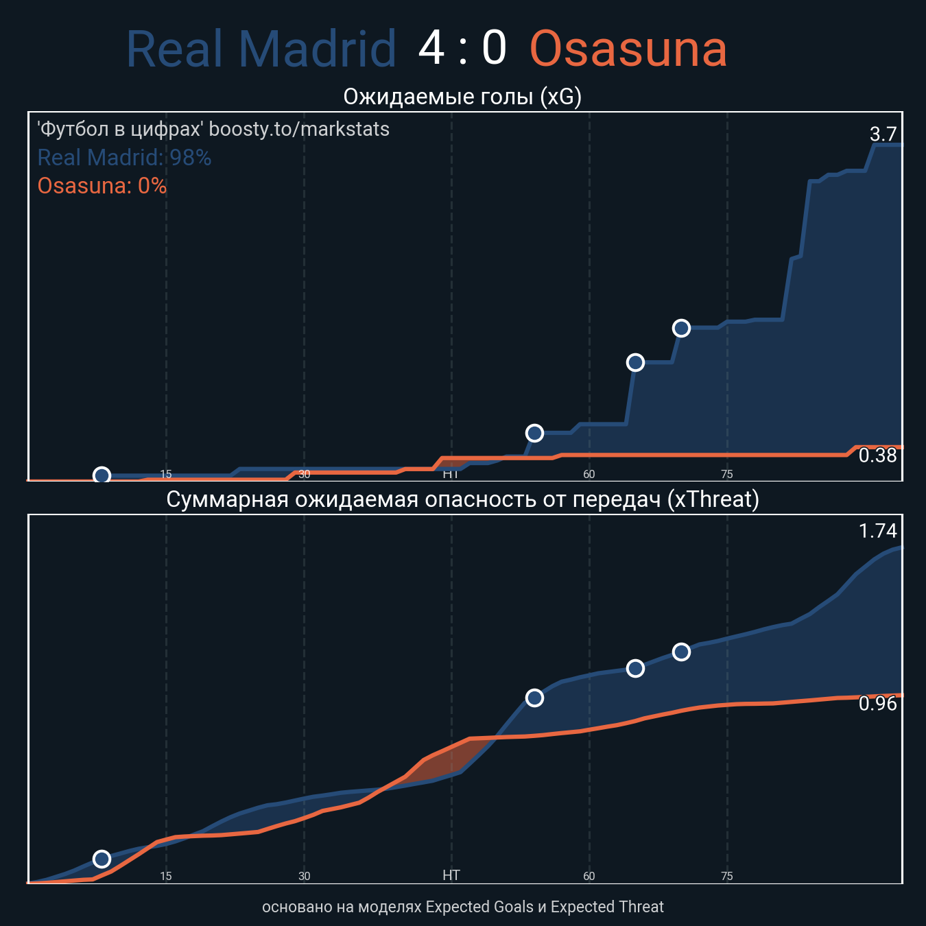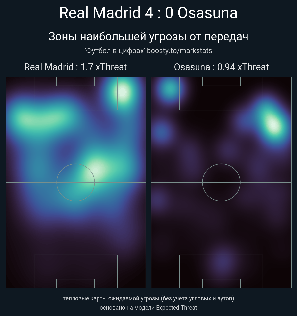 xThreat без учета угловых: 1.7 - 0.94