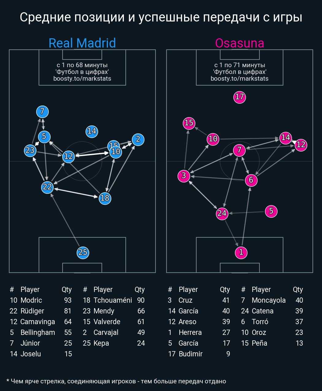 82 успешных передач из 90 попыток (2 под удар, 10 с продвижением, )