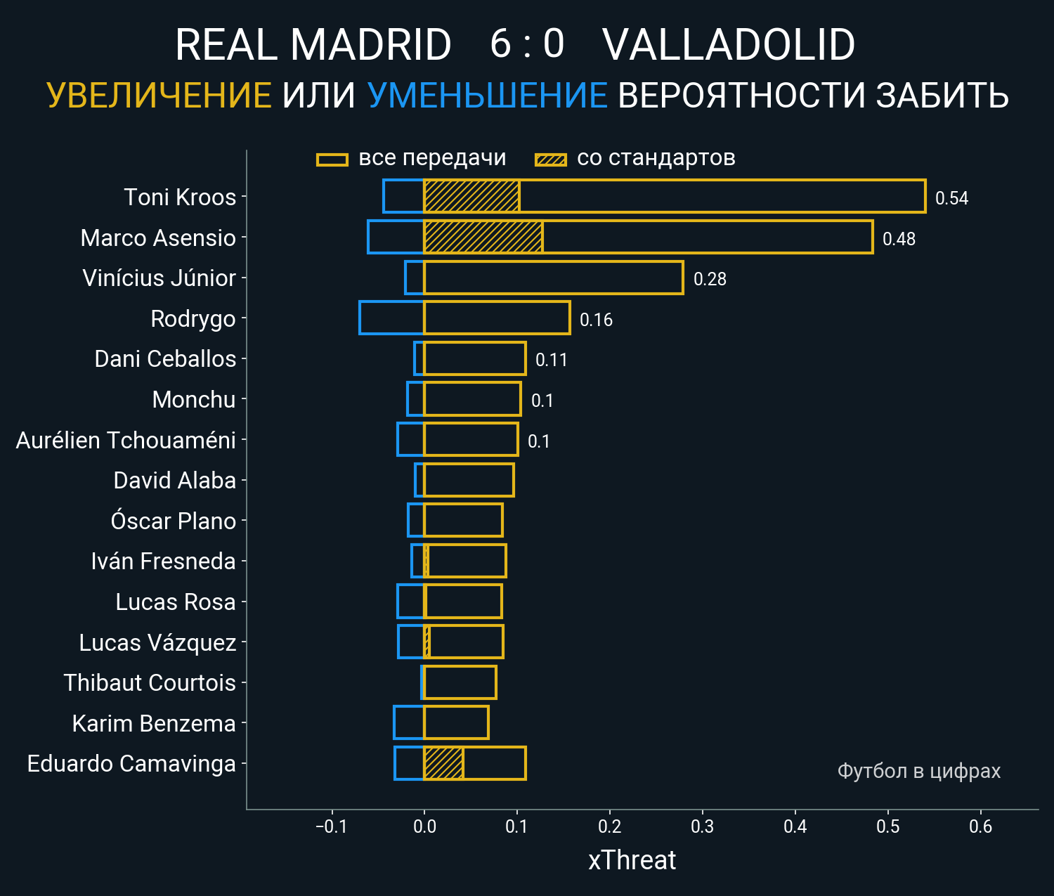 0.36 очка xT (+0.13 со стандартов)