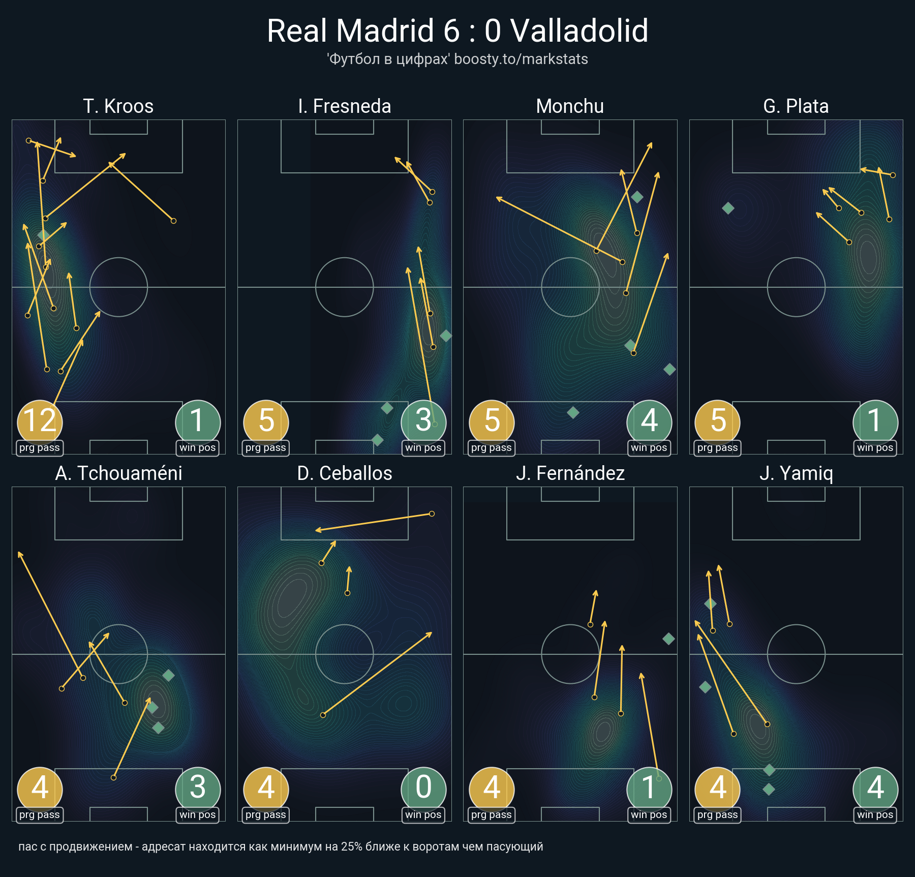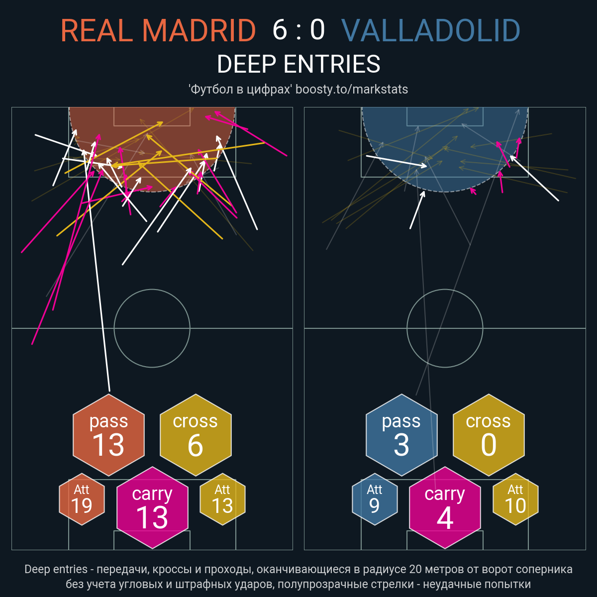 19 успешных передач из 30 попыток (2 ассист, 3 под удар, 3 с продвижением, 12 на трети соперника)