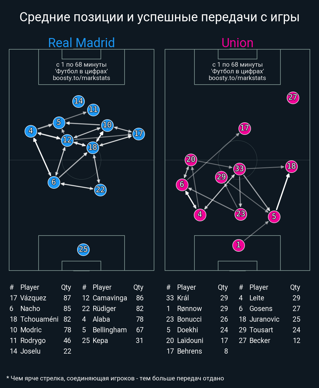 60 успешных передач из 69 попыток (3 под удар, 5 с продвижением, 21 на трети соперника)
