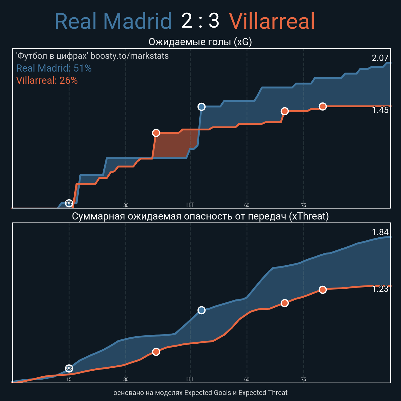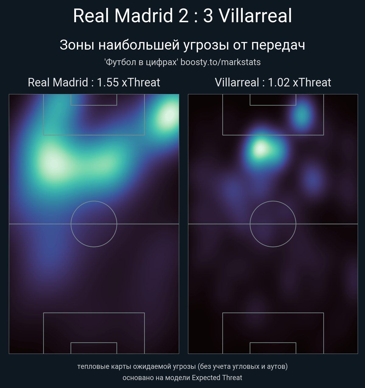 xThreat без учета угловых: 1.55 - 1.02