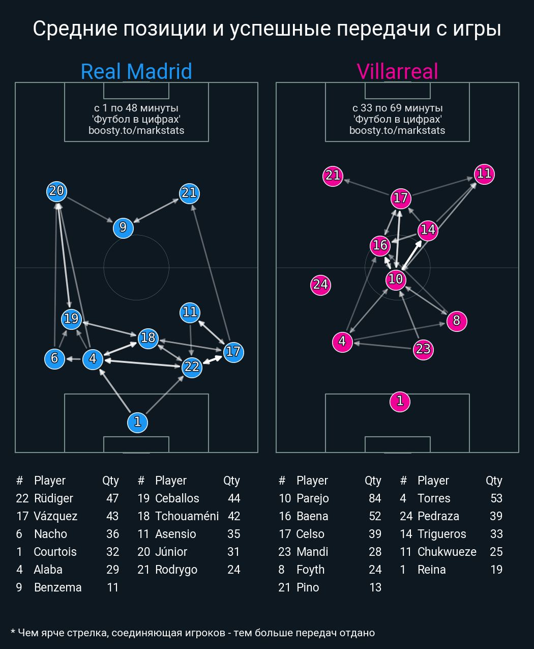 30 успешных передач из 31 попыток (1 под удар, 2 с продвижением, 7 на трети соперника)