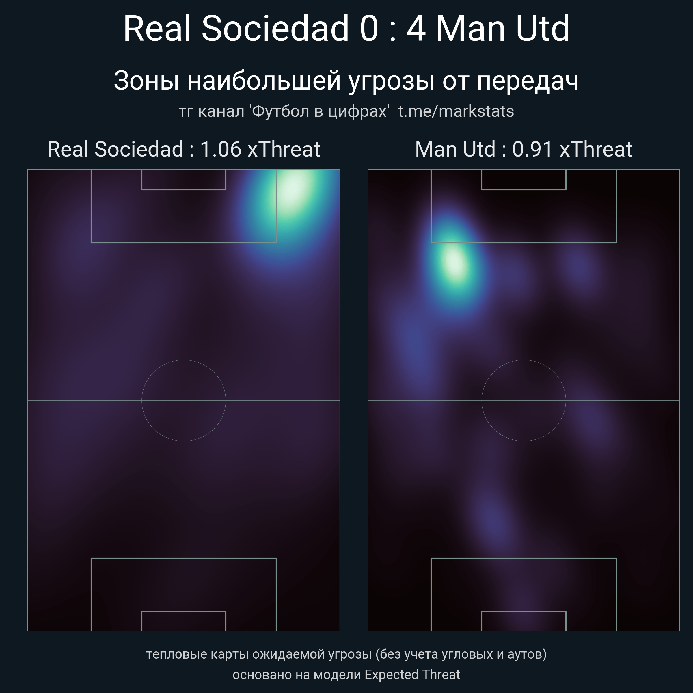 ▪ xThreat без учета угловых: 1.06 - 0.91