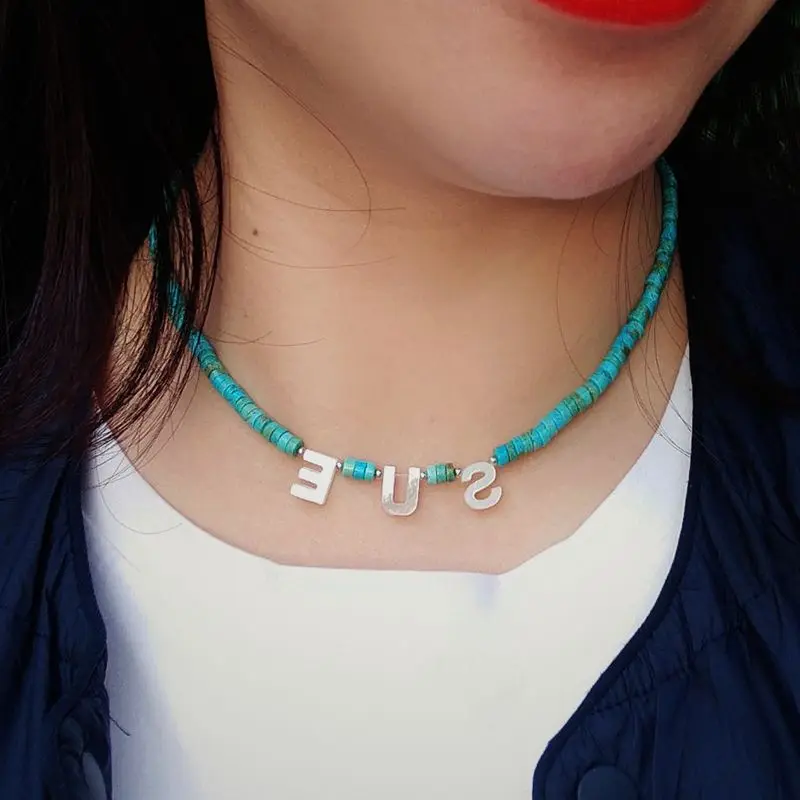 «Real Turquoise Choker Necklace Personalized Name Customized Lady Shell Charm Initial 26 Letters Necklace Boho Jewelry Birthday» по лучшей цене на рынке! Всего за 22$ (2090рублей)
