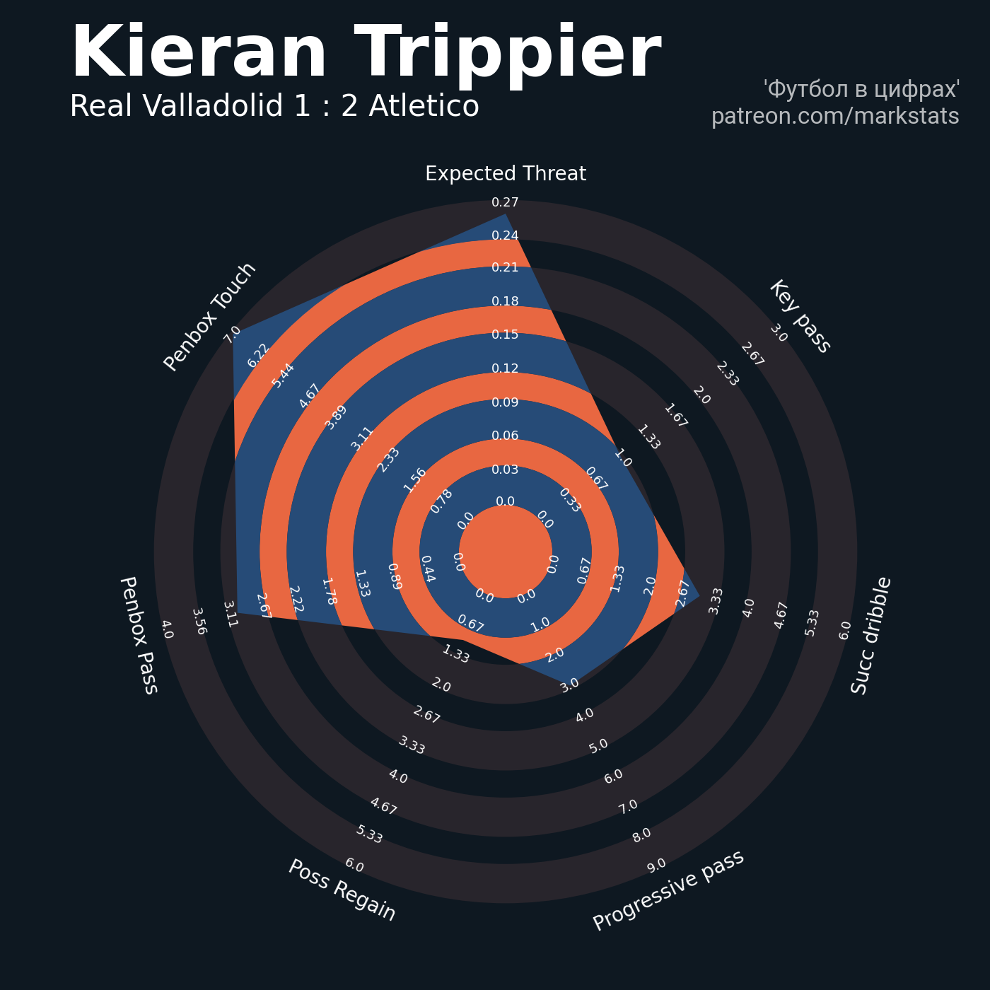▪ 0.27 очка xT (+0.37 со стандартов)